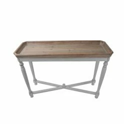 Add a touch of quaint cottage style to your home with the rustic beauty of the A and B Home Rectangle Tray Table. This naturally charming table showcases a gently weathered finish with lathe-turned legs and attractive criss-cross bracing at the bottom. It’s constructed from fir and engineered wood for a natural look that lasts.