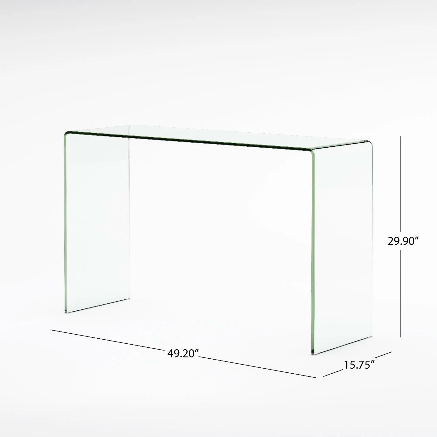 It’s a rare piece that offers a stunning design that looks like it’s almost non-existent, but the Brookhaven Console Table is just one of those rare pieces. A single piece of 12-mm tempered glass is bent twice to create the form that you see here. Tempered glass is shatter-resistant and durable enough for everyday use. The smoothed and rounded edges help maintain the softness of the design while providing an edge that’s safe to touch. To keep it clean, all you need is a little window cleaner and it will look as good as the day you got it.