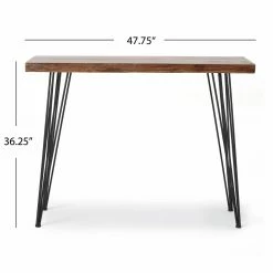 Infuse some organic character into your dรฉcor with the Remington Rectangular Console Table. The solid fir wood tabletop features a living edge effect and radiates warmth with its natural finish. Black powder-coated iron hairpin legs put a retro finishing touch on the console table.