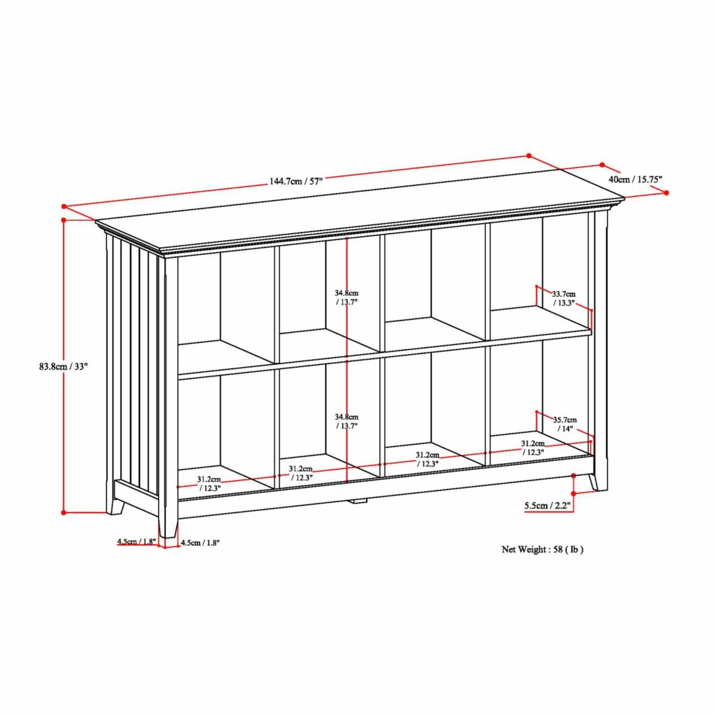 - Dimensions: 57W x 15.75D x 33H in.