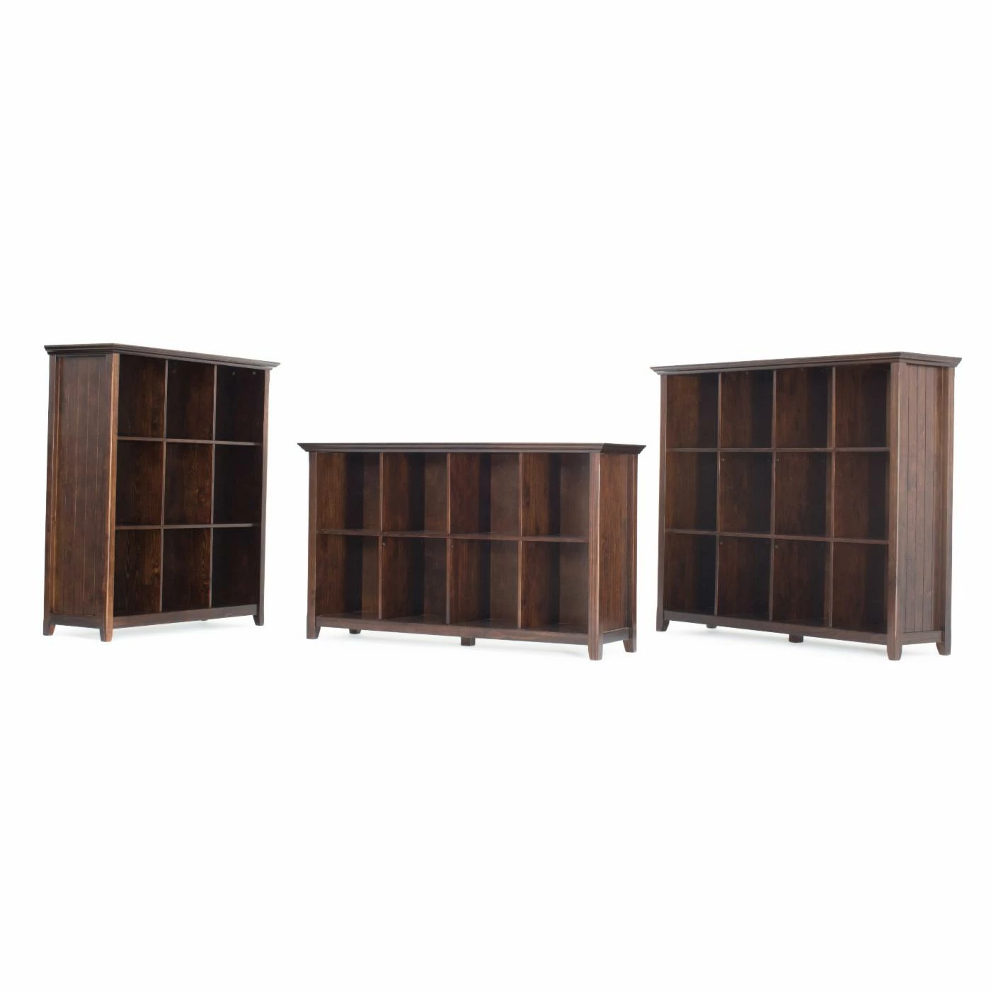 You will have plenty of space for storage and display with the Brooklyn + Max Brunswick Pine Wood Cube Storage Sofa Table. The finishes shine and fit in with almost any color scheme. With tapered legs and a molded crown edging, this console table gives your home a traditional touch.