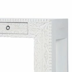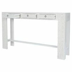 A transparent Washed finish keeps a spotlight on the extraordinaire carved front of the Butler 2069290 Console Table – Artifacts. Crafted and hand carved from exotic mango wood solids and recycled wood, this console is destined to be the brightest spot in the room.