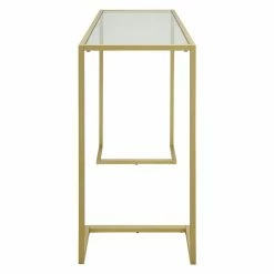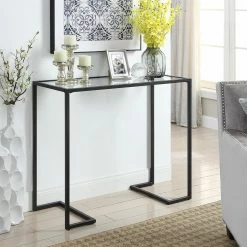 Grace an entryway, hallway, or the back of a sofa with the contemporary and sophisticated Carolina Chair & Table Co. Monaco Glass Top Console Table. This console table features a modern angular base crafted from durable, powder-coated metal in your choice of available finish options. Topped with a tempered glass top this piece is light, elegant, and easy to clean.