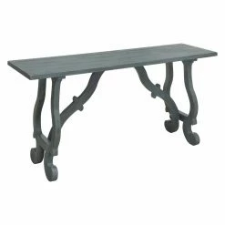 Give yourself a perfect place to gather vases, pictures, and more with the Coast to Coast Orchard Rubbed Console Table. This stunning console table is a perfect fit for any classical room design. Its frame boasts a base with carved and scrolled legs and stretchers. Tough pine hardwood and engineered wood are used to craft the frame. Pine veneers top the wood, finished in your choice of available color. The finish is distressed with a rubbed look.