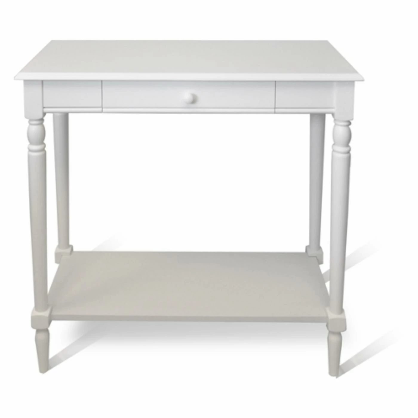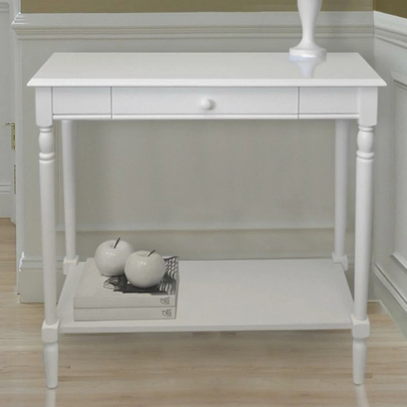 With classic lines, the Convenience Concepts French Country Hall Table with Drawer and Shelf – White really brings out the style of your home. The crisp white finish of this wood hall table makes it the perfect addition. This table has a pair of shelves and drawer to offer plenty of storage space.
