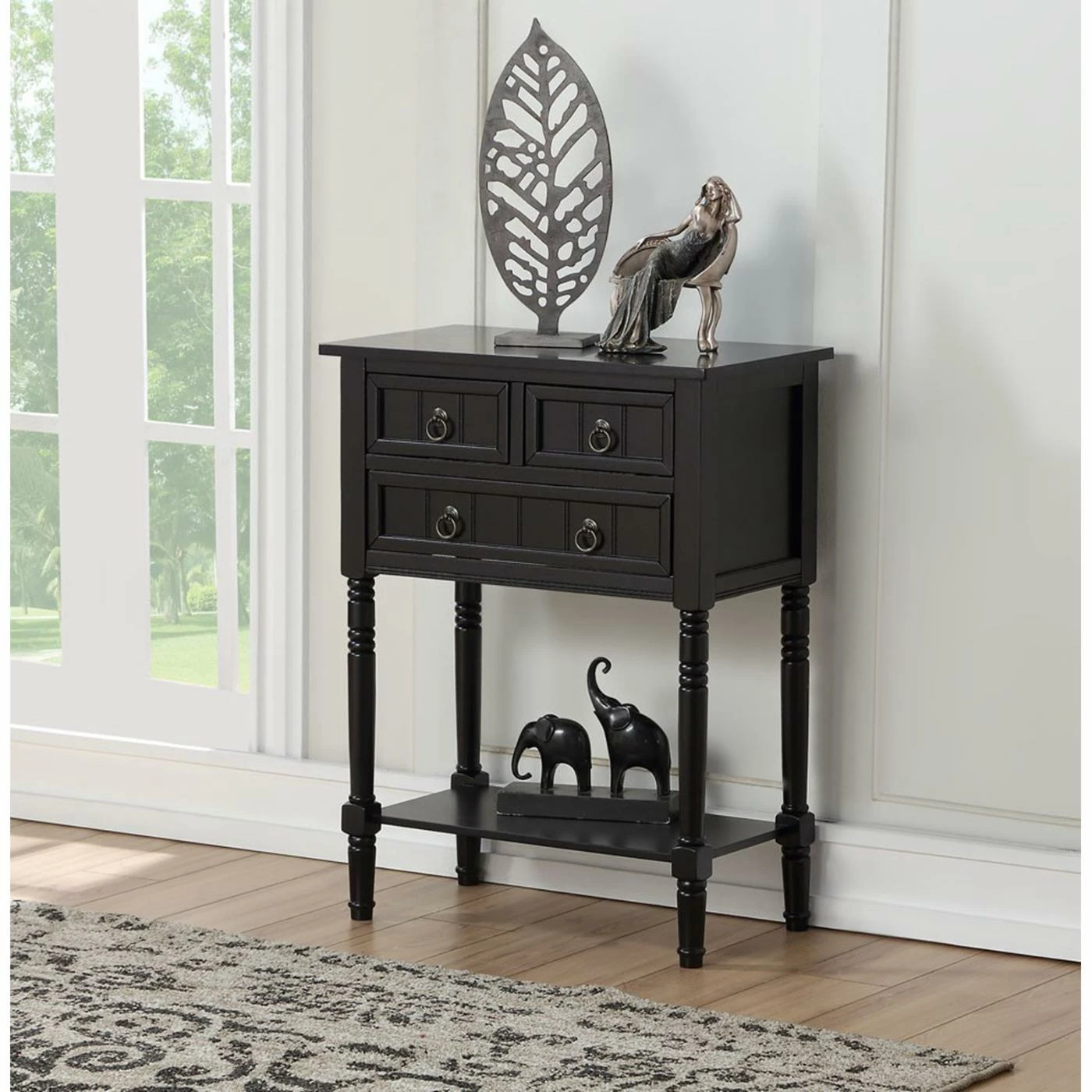 For a cottage feel, the Convenience Concepts Kendra Console Table features beadboard drawer fronts and turned legs. Two levels for display and three drawers make this console table a great choice for nearly any room. Customize the look to fit your space by choosing from available finish options.