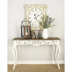 Elegant scrollwork and curved legs enhance the traditional style of the DecMode 46 in. Wood Carved Console Table. This beautiful console table features a lightly distressed finish to give it a loved-over-time appearance.
