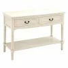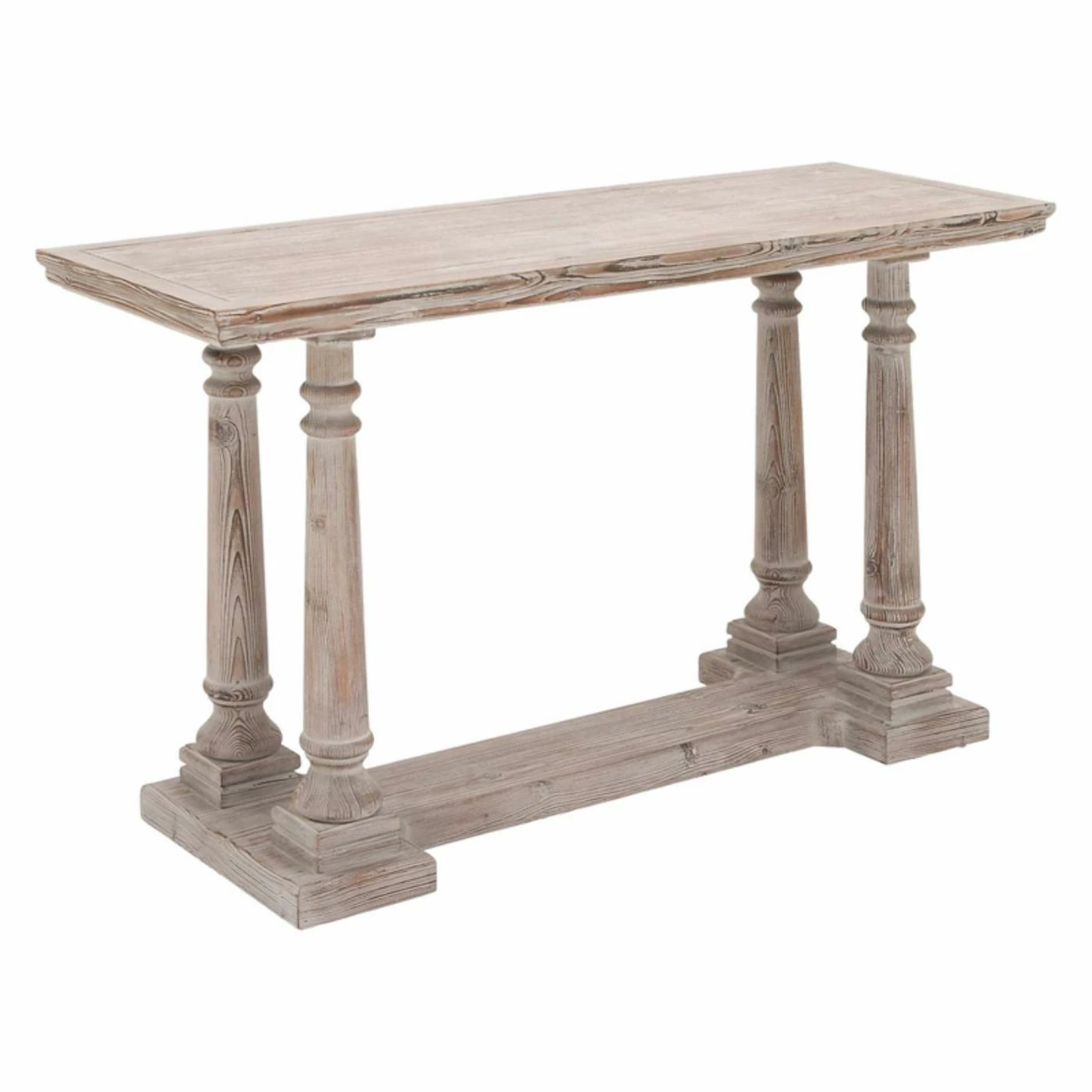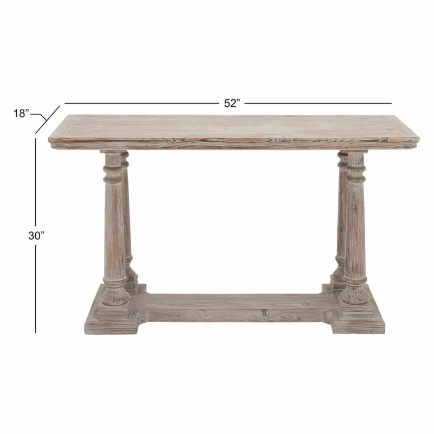 Designed to look as if it has survived through the ages, the DecMode Distressed Wood Console Table brings antique appeal to interiors. The fir and engineered wood table bears a distressed brown and white finish. An example of traditional and timeless design, the table has a rectangular top with grooved accents, four carved column legs, and a sturdy I-shaped base.