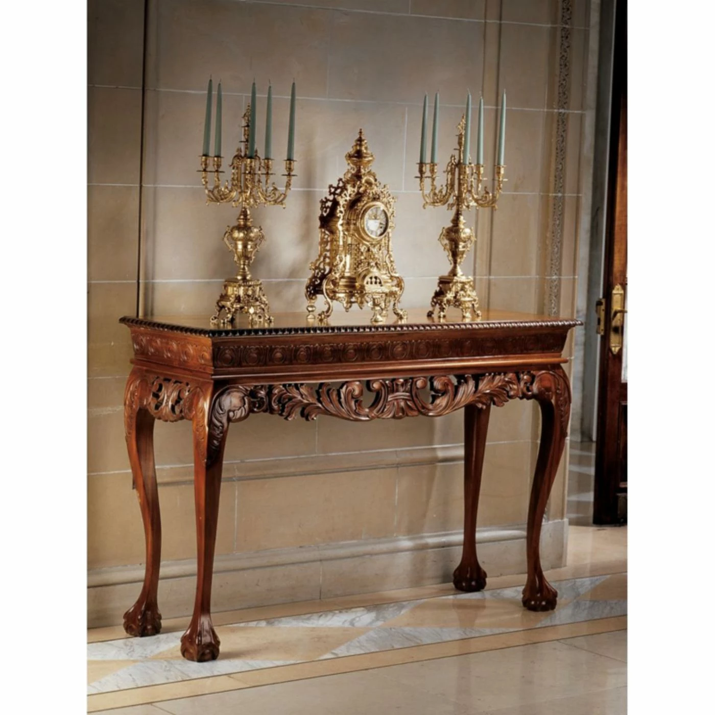 - Acanthus scrolls and intricate claw and ball feet
