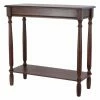 The East At Main Lydia Console Table exudes vintage style with its elegant carvings, brass drawer pull, and turned legs. This table is an ideal size for use in apartments or small spaces like a bathroom vanity or entryway. Handcrafted of bayur wood, it features a painted finish in your choice of color and is topped in a natural wood finish to create this two-tone beauty.