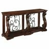 For an elegant way to welcome guests, introduce the Furniture of America Anneka Traditional Cabriole Console Table into your foyer or front hall. This console table is scaled slim, tall, and wide, which means it would also work beautifully in your living room or anywhere needing style and display space. Its sinuous top includes a beveled clear glass insert and a generous rail with elaborate carvings. Carved turned legs elevate the look and stand on a stepped base shelf, which doubles the display space. A rich oak finish over solid wood and veneers makes this console table distinguished.