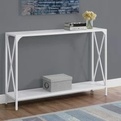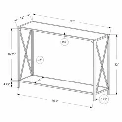 Invigorate your hallway’s style with the Monarch Specialties Rectangular Cross Leg Console Table. This study, versatile piece offers plenty of table and shelf space to display photographs or other decorative items. It also makes a handy place to set your phone, purse, wallet, etc.