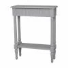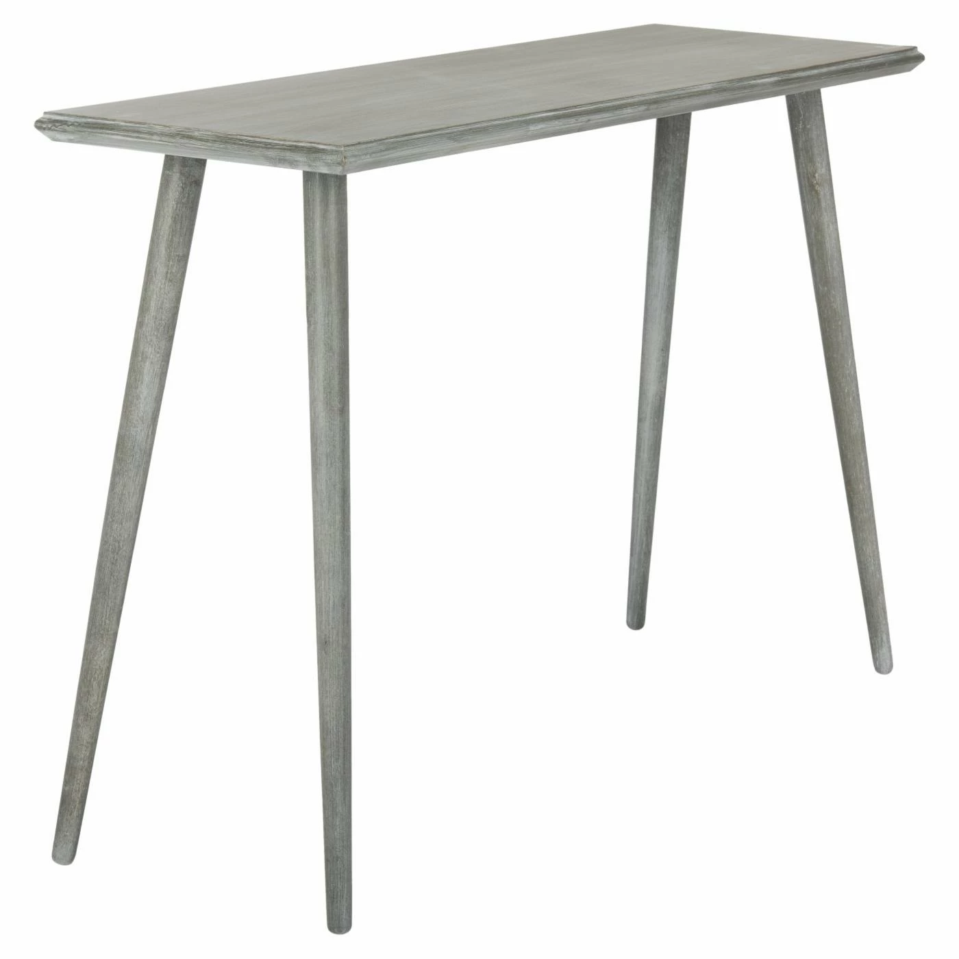 Dowel legs elevate the Safavieh Marshal Gray Console Table, a satisfyingly simple piece that makes a statement in any room. A unique slate gray water-based paint finish decks strong engineered pine wood. Legs are positioned at a slight angle and are tapered toward the feet.