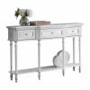 The versatile Signature Design by Ashley Mallacar Sofa Table is tall and slim to fit in your foyer, hall, or behind the sofa. This rustic sofa table is crafted of thick pine veneers with saw cut accent planks that add rugged charm. The wire brushed black finish accentuates heavily turned legs. An open base shelf adds display space to this sofa table.