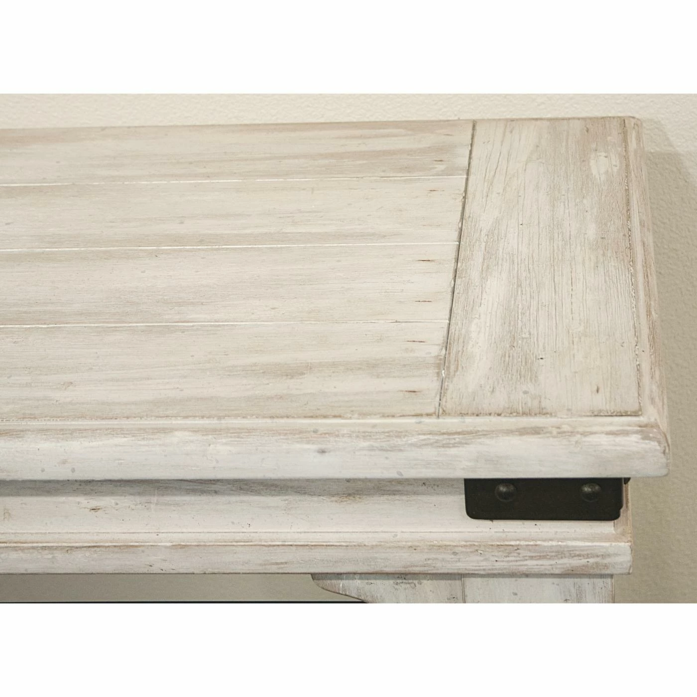 - Distressed white finish over veneers