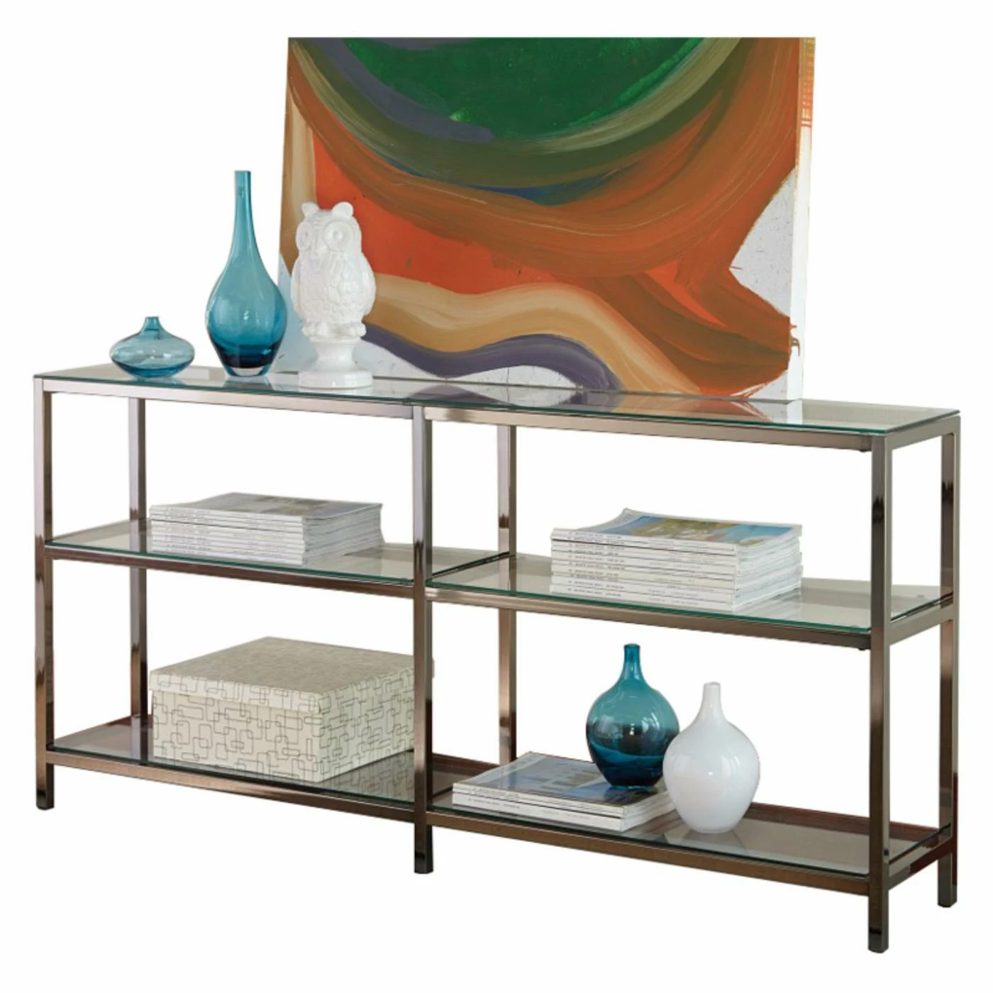Use the Benzara Industrial Metal Bookcase with Glass Shelves as a base to build your modern art sculpture collection. Or use this glass bookcase as a sleek console table in your entryway. No matter where you style it, the glass shelves and polished metal framework will shine.