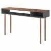 The DecMode Modern Wood and Glass Console Table features a chrome finish and glass accents. A mix of fir wood and engineered wood ensures lasting, durable use. The clear tabletop and repeating circle patterns on this console table add eye-catching interest. It rests on four tapered legs with round ball feet for a hint of elegance.