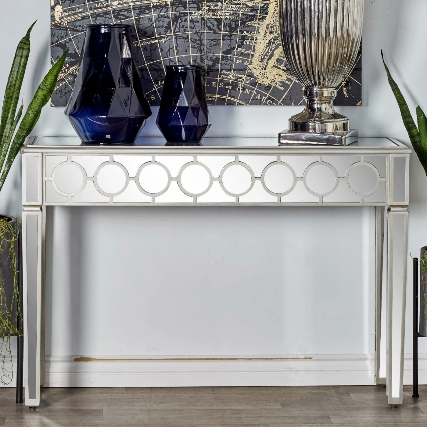 - Silver-finished frame with mirrored panels