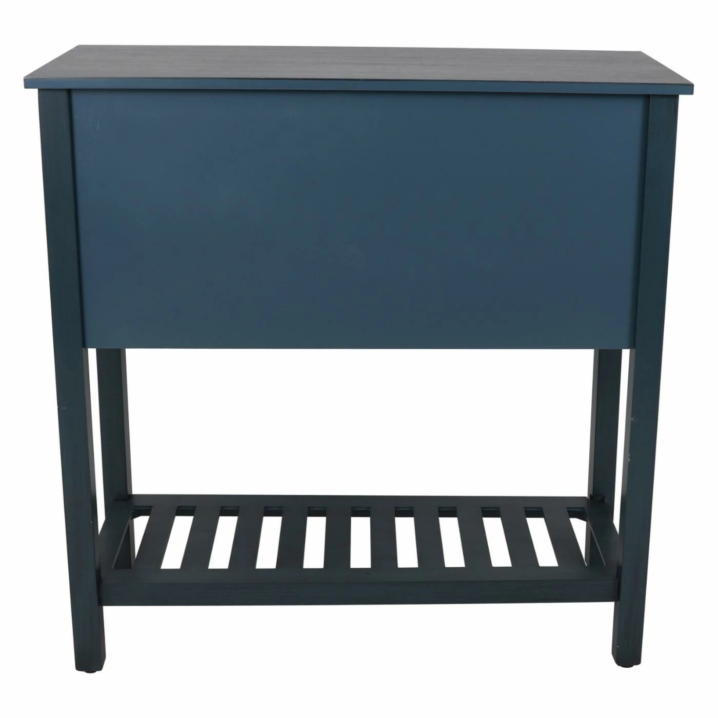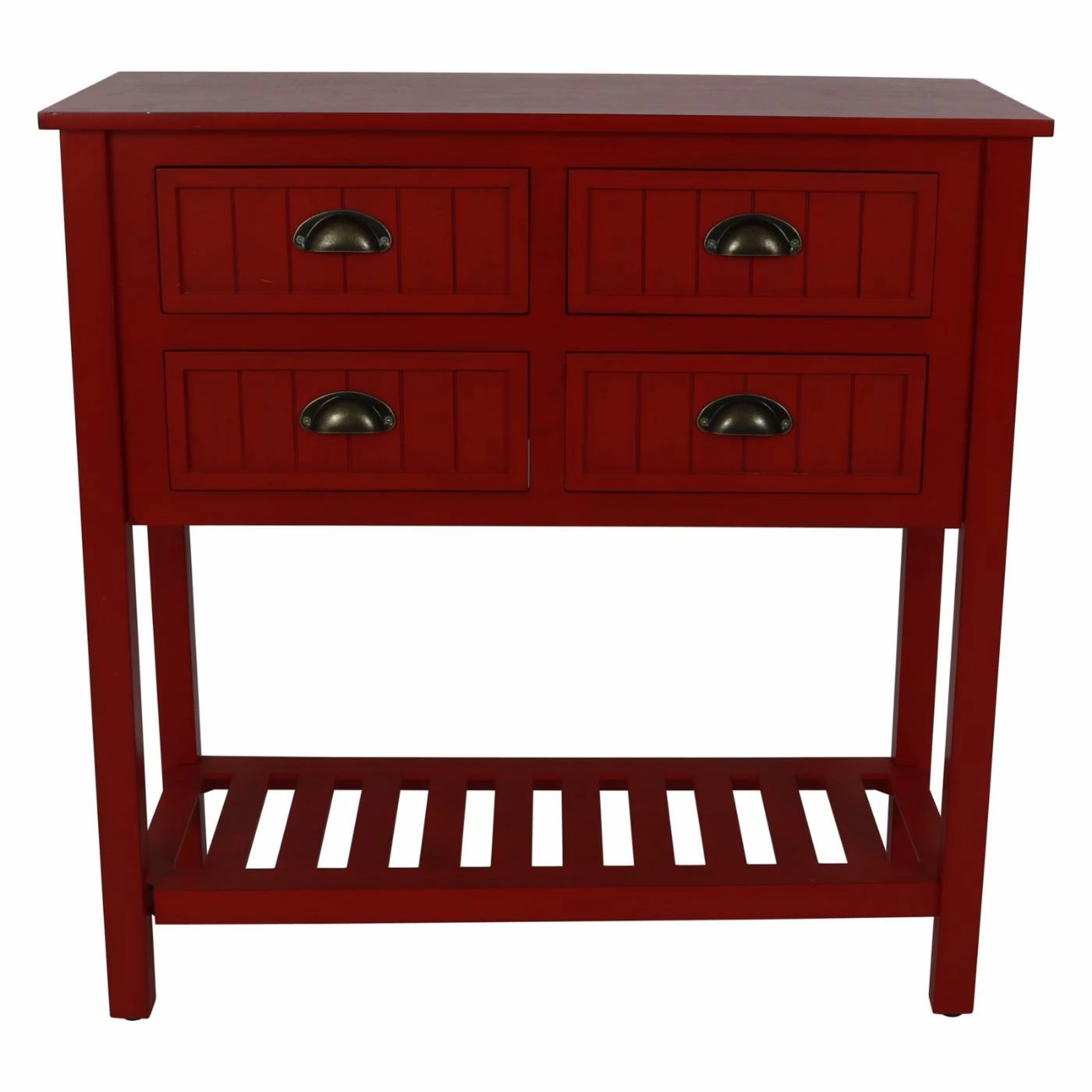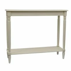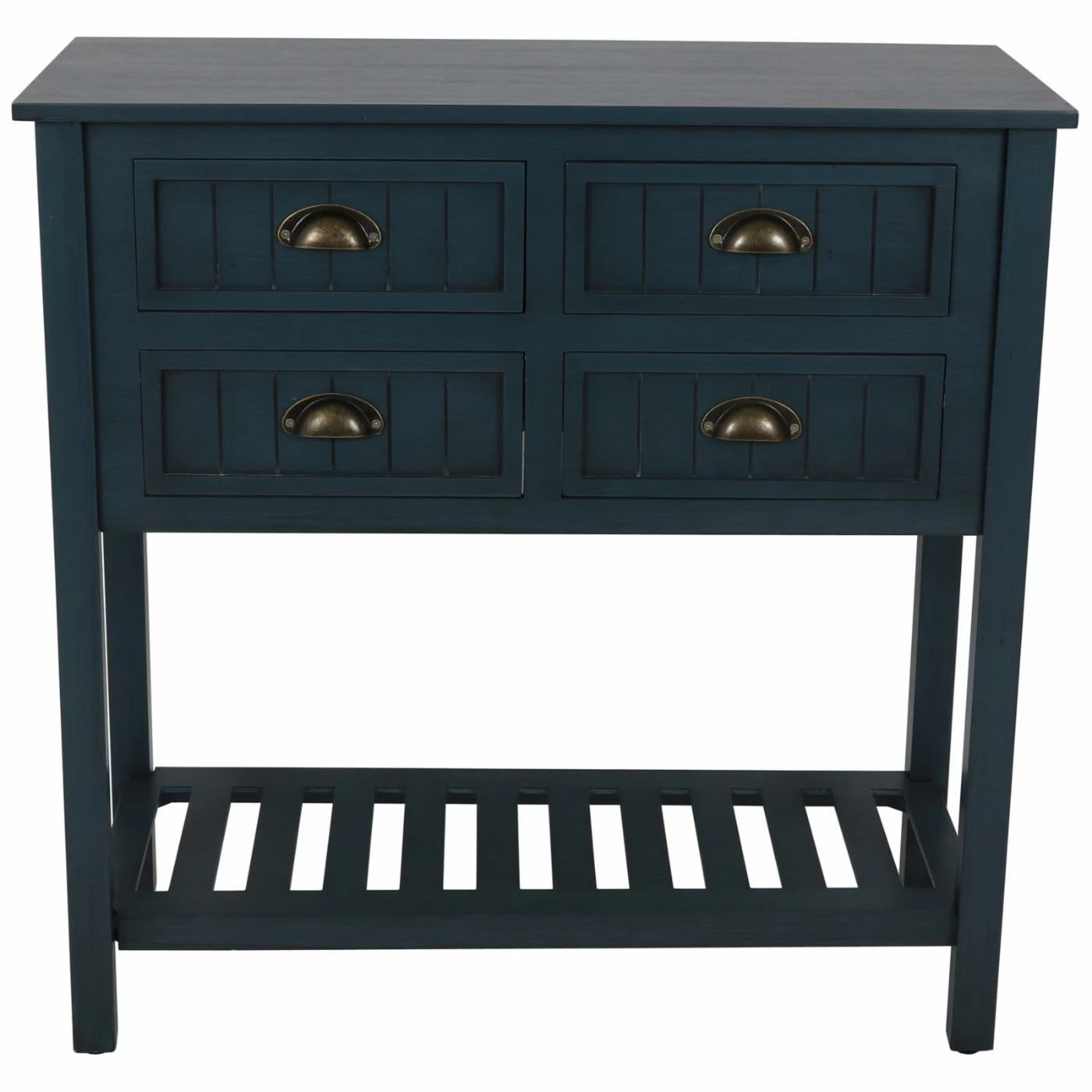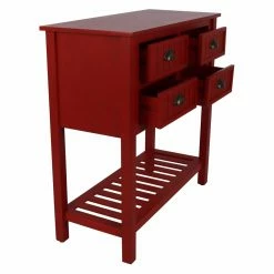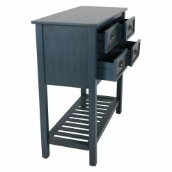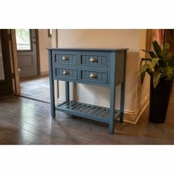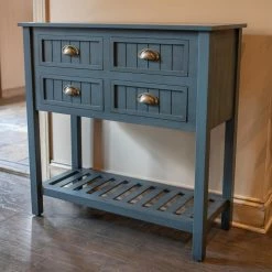 Don’t be fooled by its compact design, the Decor Therapy Bailey Bead Board 4 Drawer Console Table offers plenty of space for both storage and display. This wide console table is built from wood with block legs. Beadboard paneling and metal cup pulls add vintage-inspired charm. A lower shelf offers additional display space.