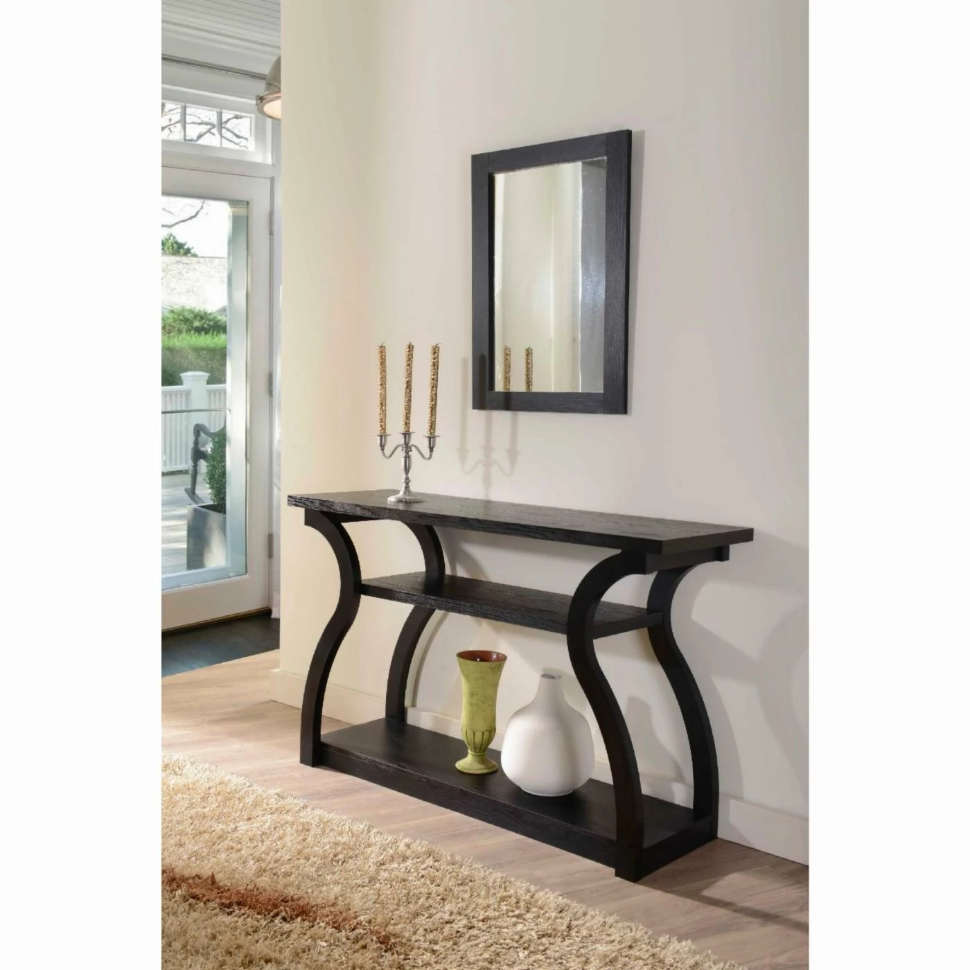 The Furniture of America Brenda Console Table features curved legs that create an eye-catching silhouette that adds an interesting design touch to any room in your home. Three tiers of open storage allows you to mix and match baskets, books, and decorative items to personalize this sleek piece. The wide bottom shelf provides stability to this piece, making it a durable addition to your home.