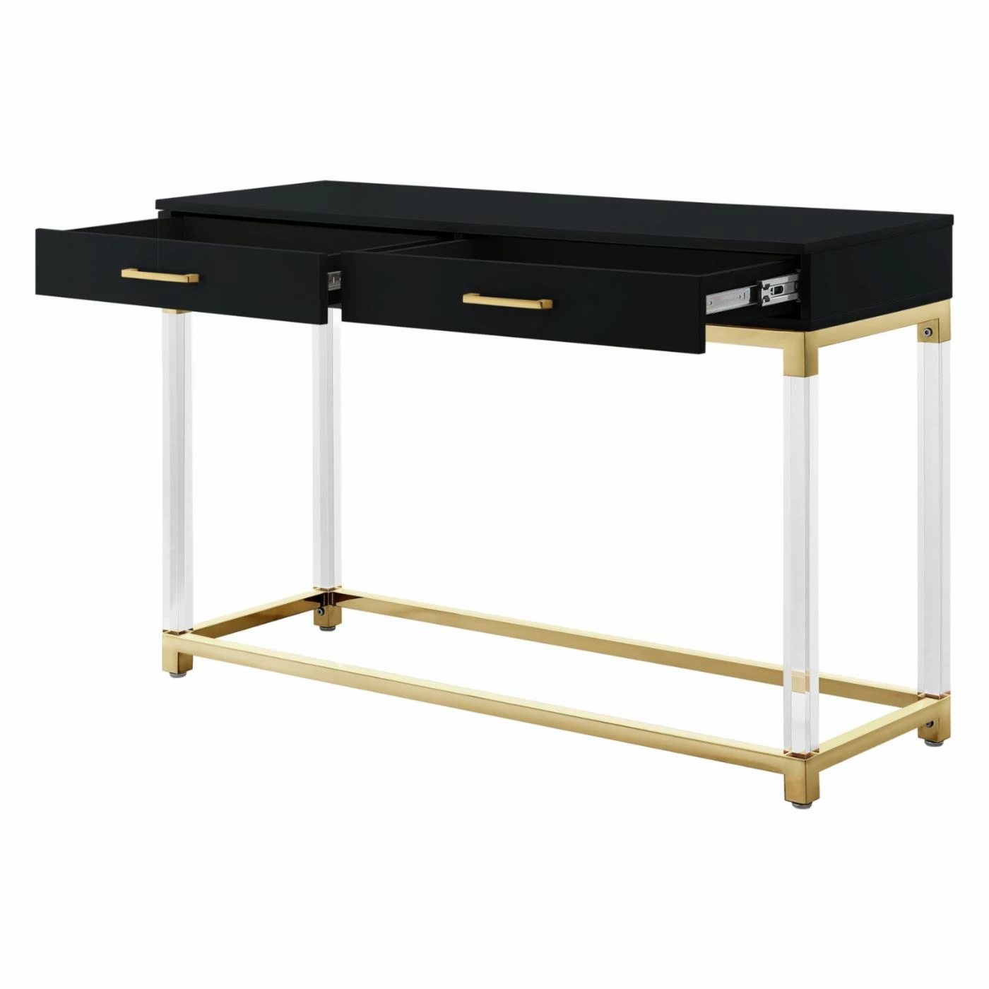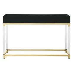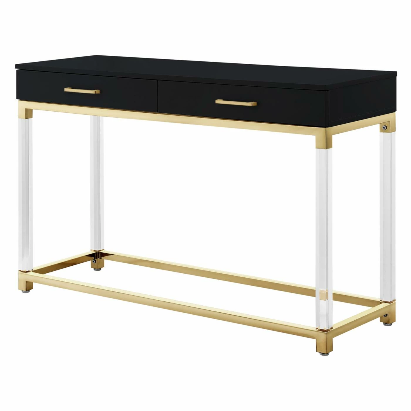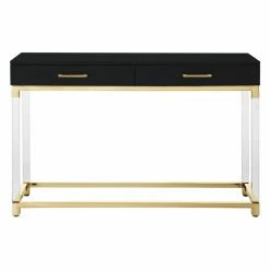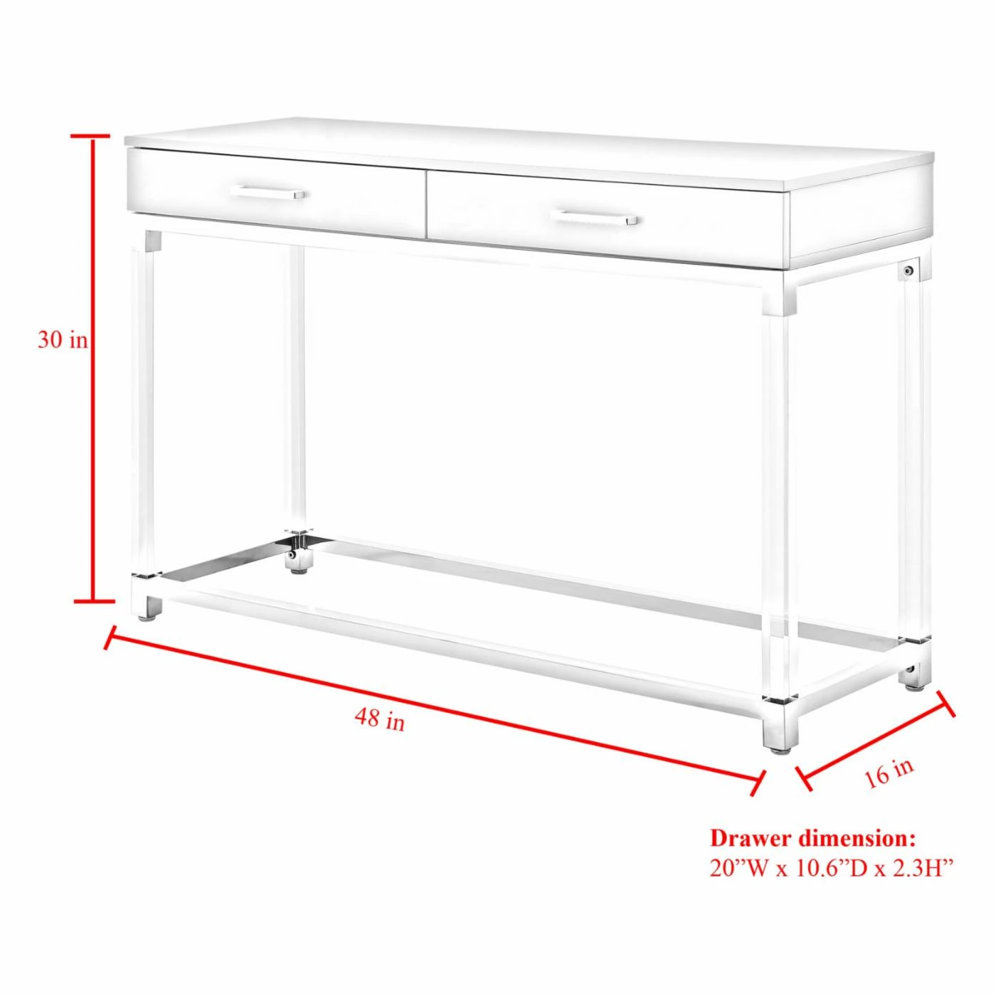 Elevate your home with glam style from the Inspired Home Davion 2 Drawer Console Table while simultaneously organizing your knick-knacks and small decorative items. This console table is constructed with an acrylic and metal base and engineered wood top. This rectangular table arrives in your choice of available finish option to complement your current living room or entryway style. Pair this console table with other items from the Davion Collection for a complete look in your home.
