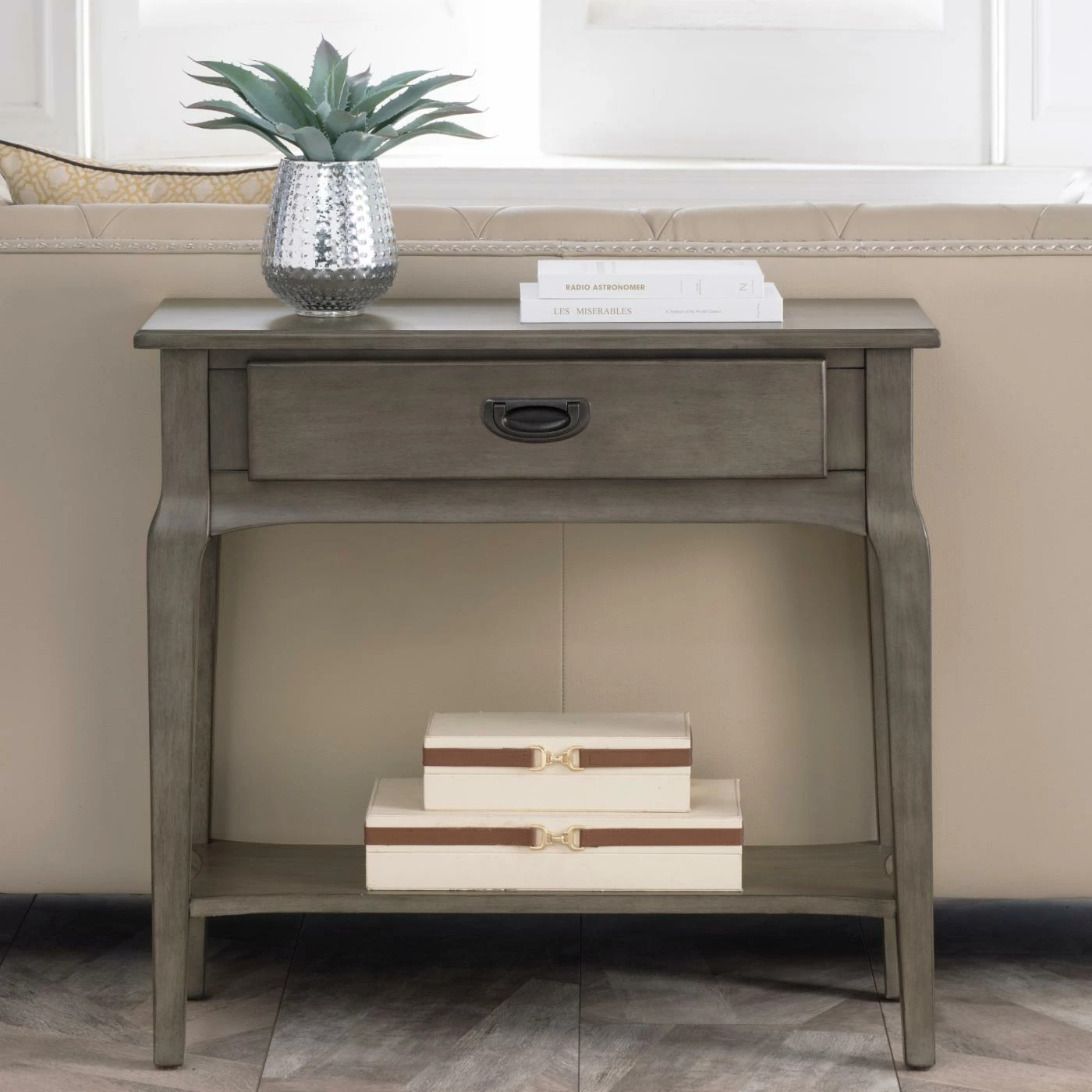 Accent your entryway with the Leick Home Stratus Apartment Hall Stand with Drawer. The neutral color will go perfectly in any living space. This piece is small enough to fit in any space but also includes room for storage. The sleek design will give your home a fresh new look.