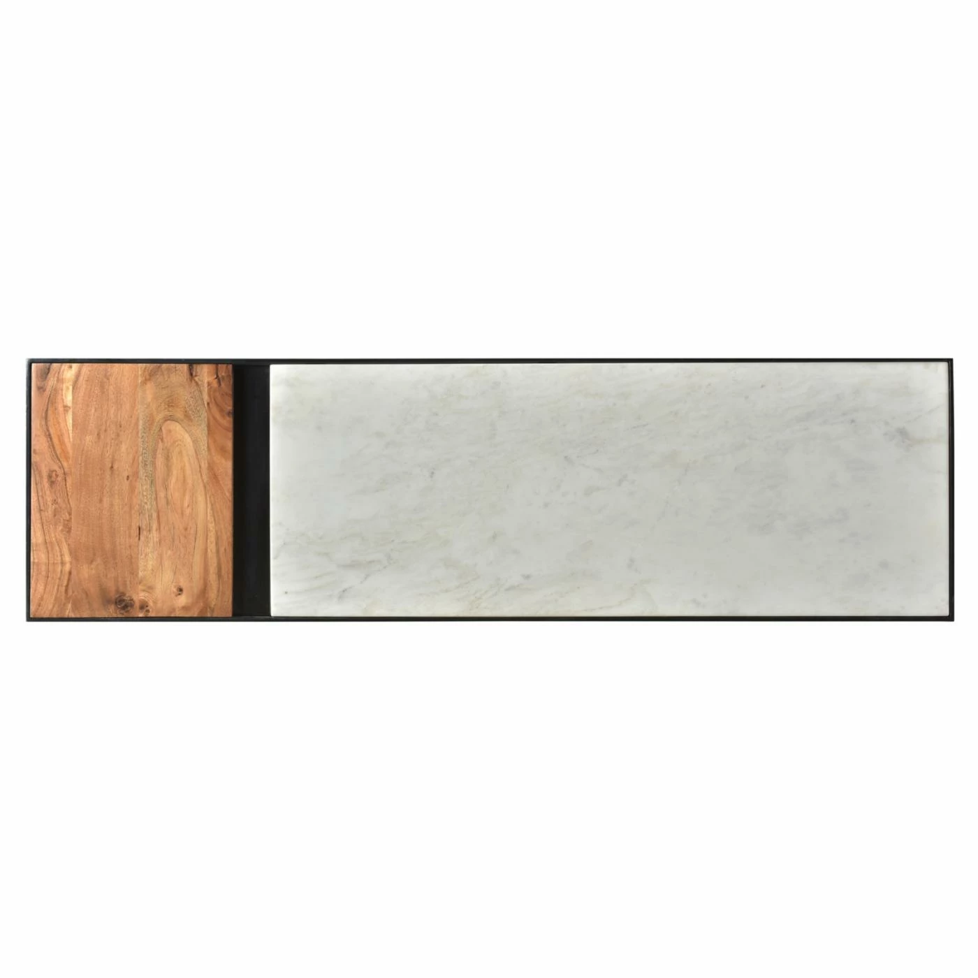 - Top crafted from marble, engineered wood, and acacia wood