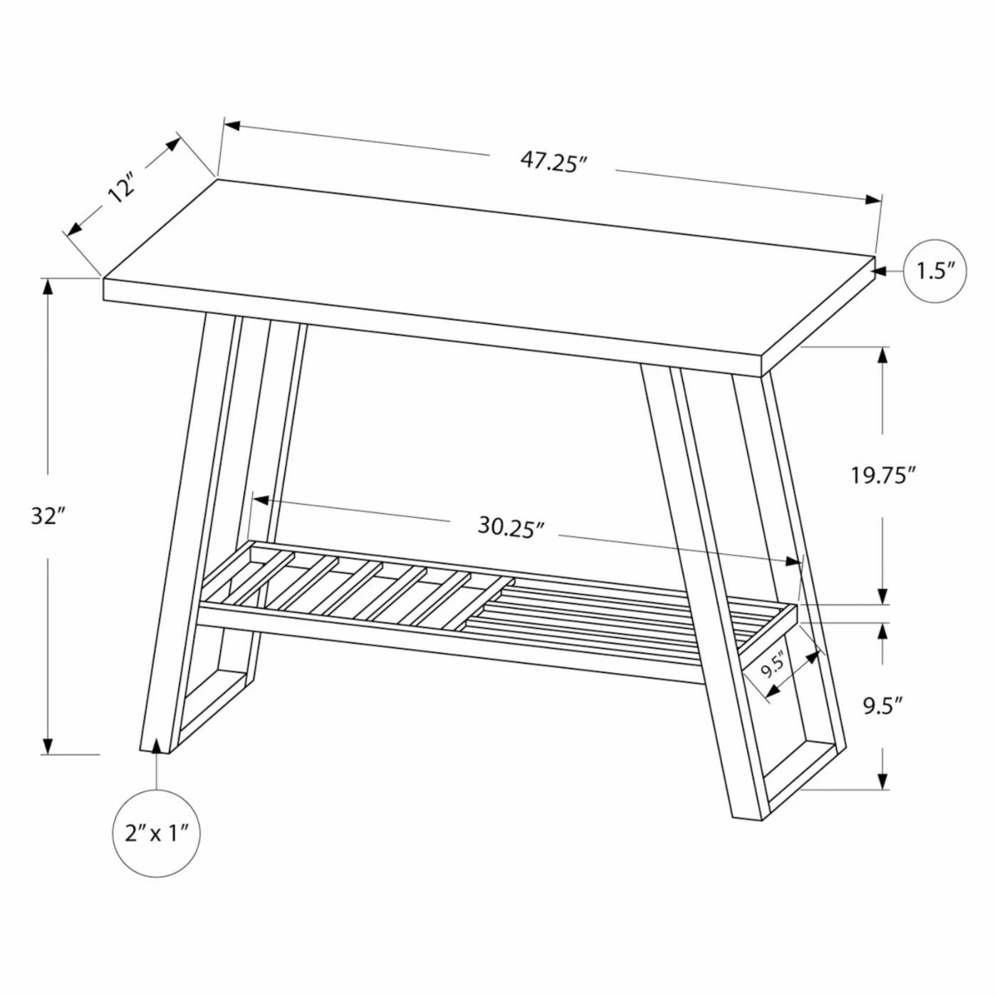 Tie your hallway’s aesthetic together with the Monarch Specialties Rectangular Console Table with Shelf. This study, versatile piece offers plenty of table and shelf space to display photographs or other decorative items. It also makes a handy place to set your keys, purse, wallet, etc.