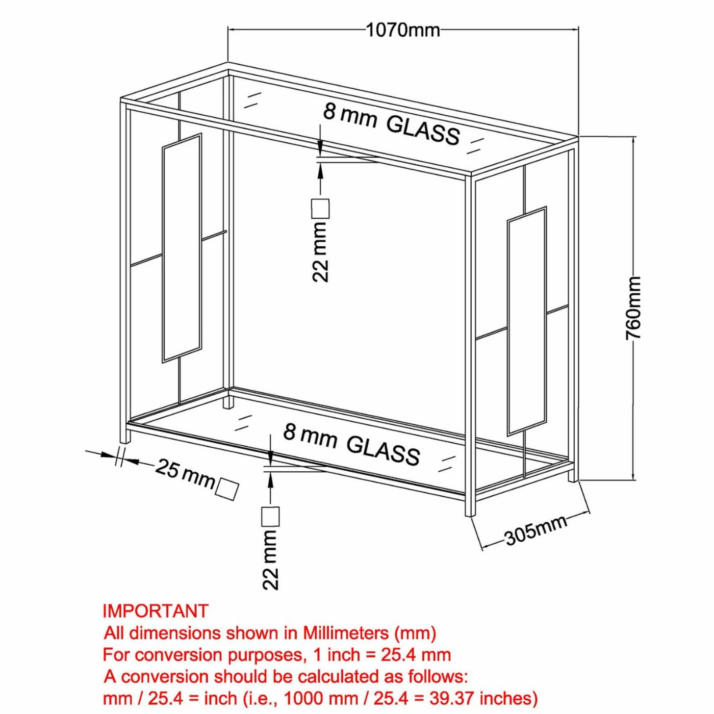 - 8-mm. clear tempered glass top