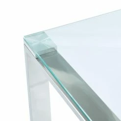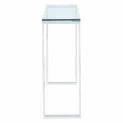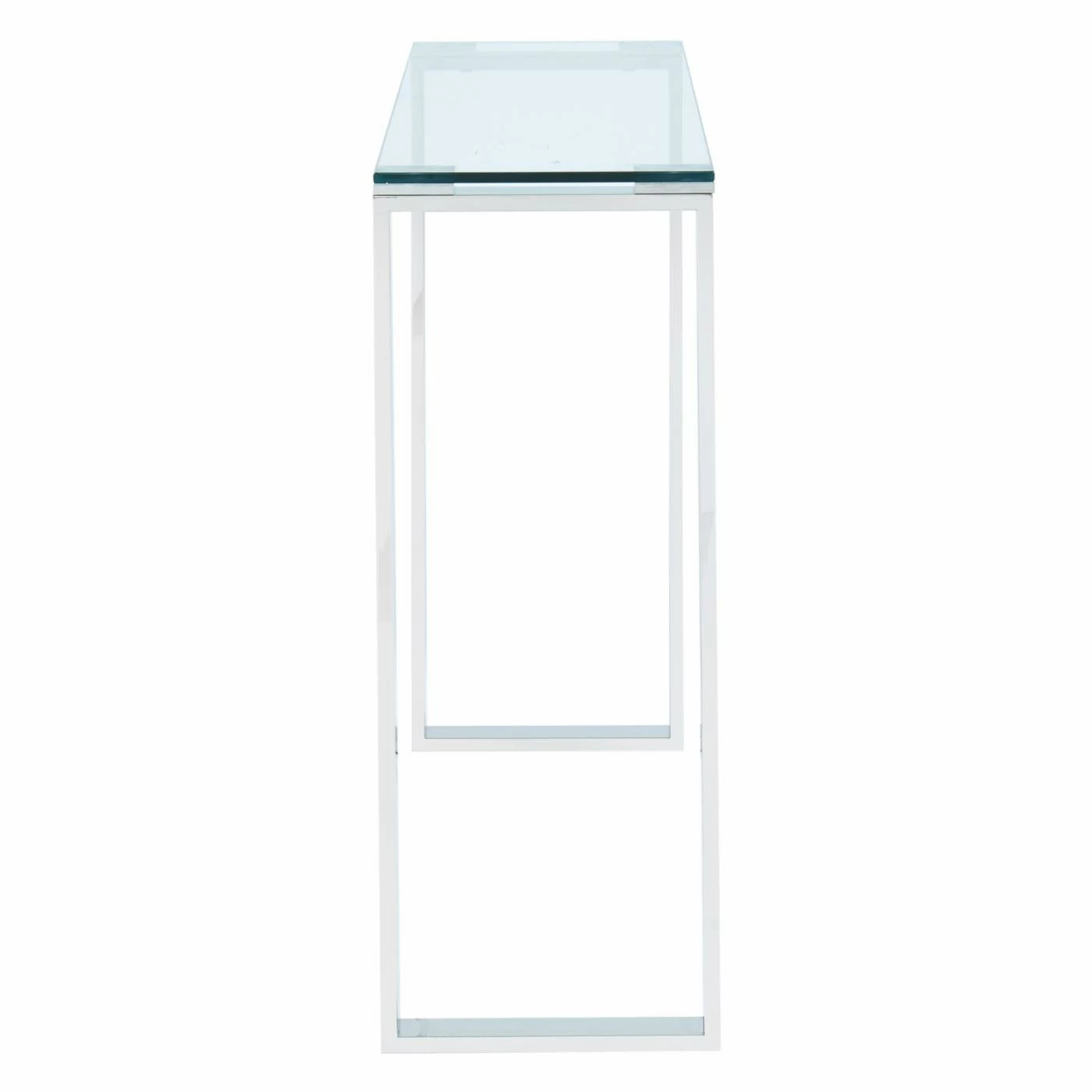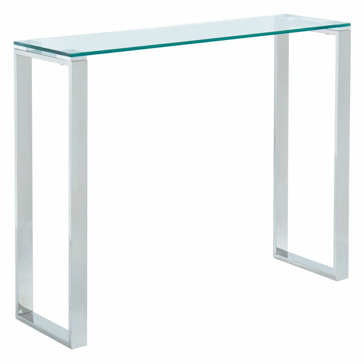Perfect for your entryway or living room, the !nspire Zevon Console Table is sure to bring an airy, contemporary look to your home. This console table features U-shaped legs made out of polished, silvery stainless steel. The rectangular table top is made of clear, tempered glass. Place your favorite photographs or home dΓ©cor items on the table top and enjoy their reflections in the glass. Pair this piece with the !nspire Zevon Accent Table (sold separately on Hayneedle.com) for a cohesive look.