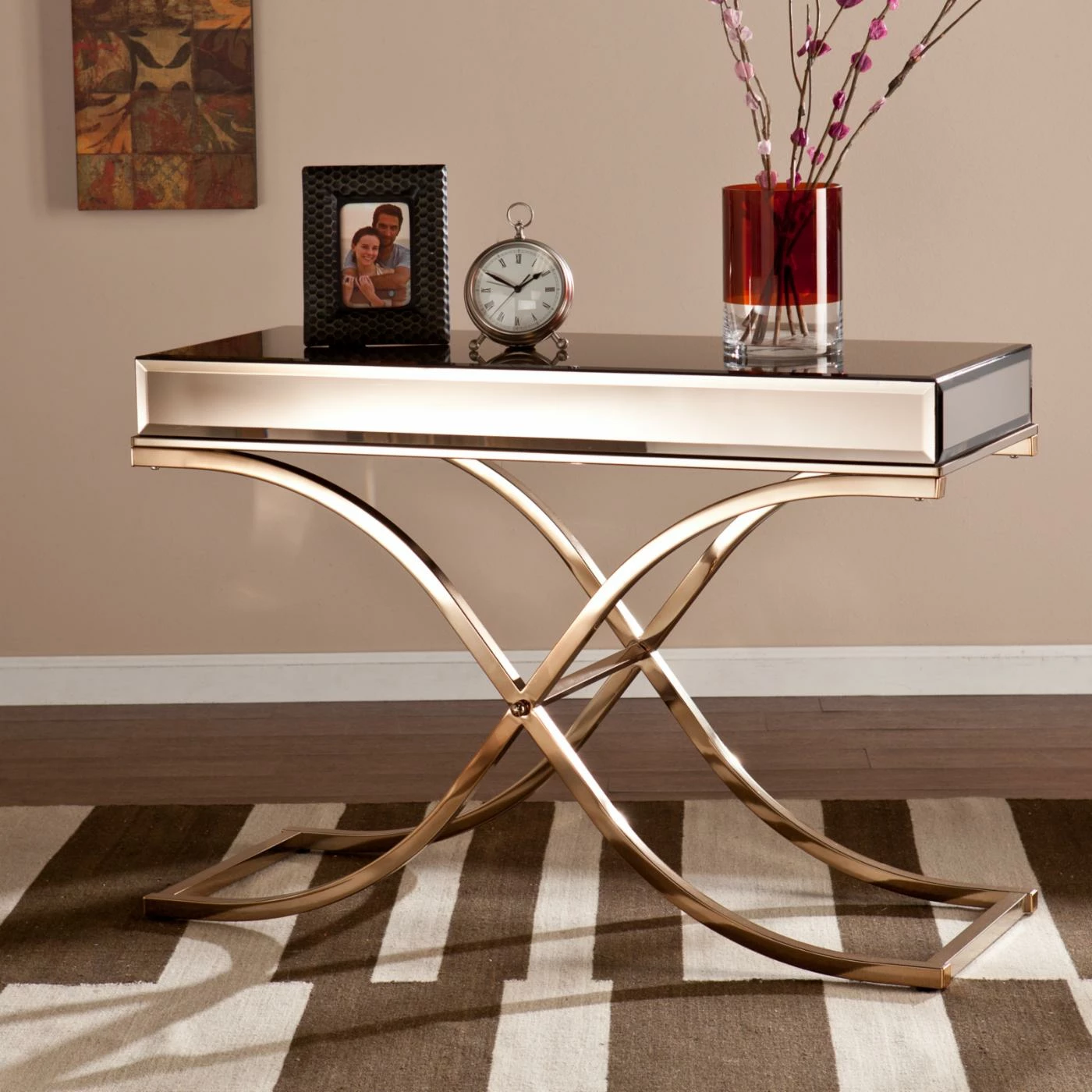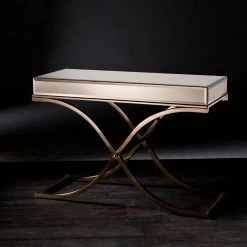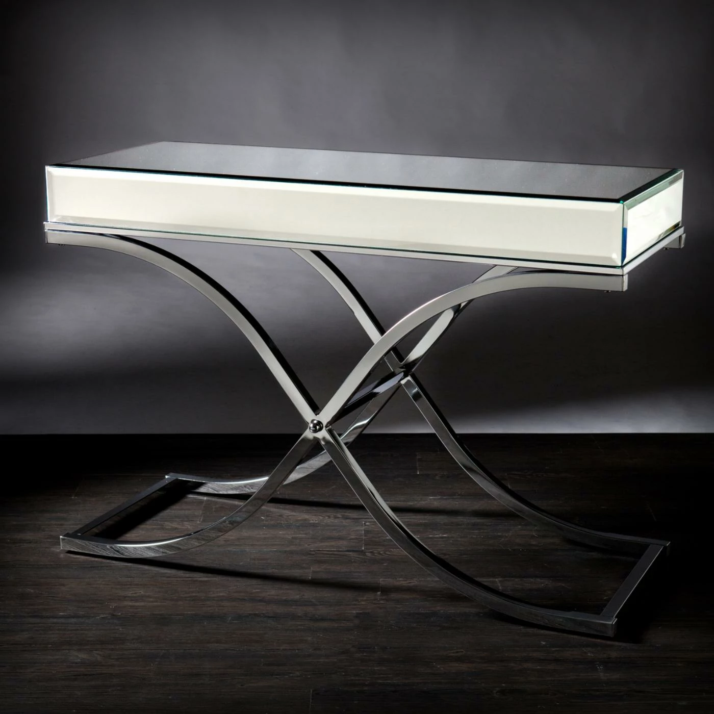 The smart and cosmopolitan Southern Enterprises Ava Mirrored Console Table brings vintage glamour to any setting. This console table stands tall and features a slim design so is perfect in a hallway or behind the sofa. It’s graced with a box style top with tinted, beveled mirrors and stands on a curvy, X-shaped metal tube frame. Highly polished finish options allow you to design the right look for your space.