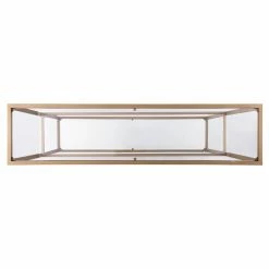 - Glass top shelf and mirrored bottom shelf