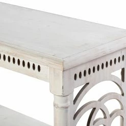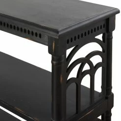 Delicately carved details give the StyleCraft 3 Tier Console Table a traditional look. This console table is constructed of engineered wood and fir veneers. Your choice of available distressed finishes allow you to customize it to best fit your space. Three shelves give you plent of space for display in your entryway or living space. To protect your floors, the legs are equipped with footpads.