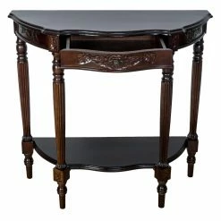 At the end of a long day, welcome yourself home to the warm, rich tones of the Wayborn 1 Drawer Console Table. Placed near your front entrance, this durable birch wood console table is the perfect place to shed the day’s worries. Place your keys or mail inside the single middle drawer to keep from accumulating clutter, and rest your bag on the lower shelf to keep it off the floor and out of the way. This table’s half-moon shape and ornate carved detailing give it an unassuming yet impactful look, ideal for more traditional style homes.