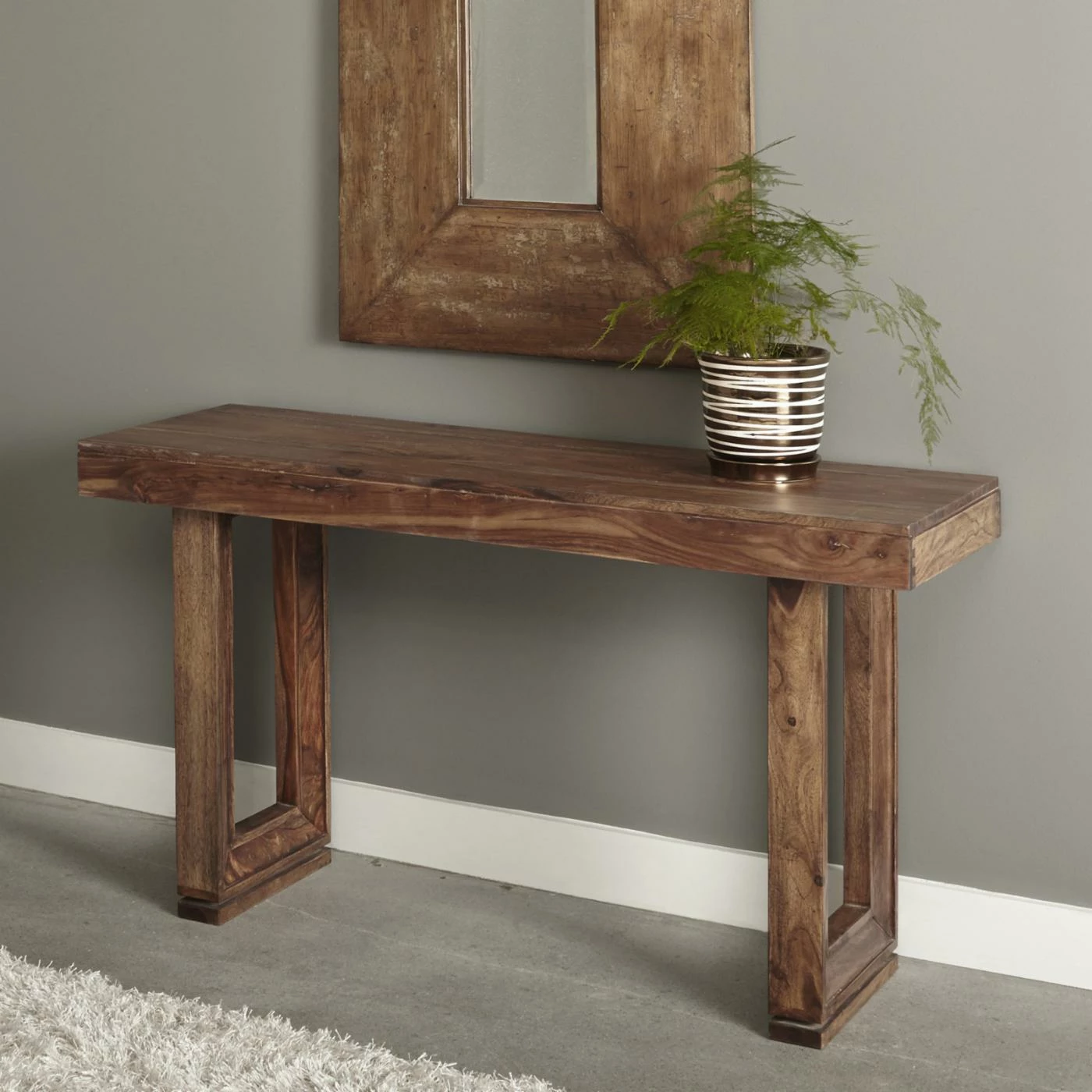 The Coast to Coast Imports Brownstone Console Table is a versatile piece that works well in an entryway, hallway, or living room. Its Sheesham wood construction promises durability. A rich nut brown finish allows this table to complement many decorative styles.
