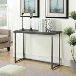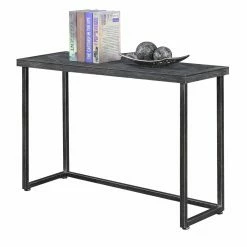 Blending modern and classic design elements, the Convenience Concepts Laredo Parquet Console Table adds sophisticated elegance to any room in your home. Its simple design opens up your living space while giving it a rustic touch. With a metal frame and wood shelf, this mixed material console table adds a beautiful contrast to any dรฉcor. Its reclaimed parquet design on top has knotty pine and woodgrain patterns to create a natural look youโll love.