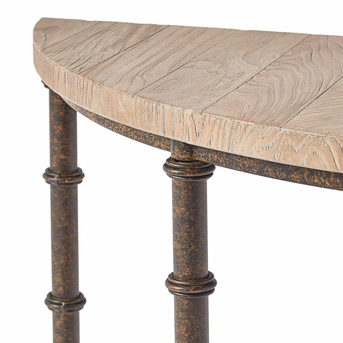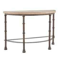 Elevate the style of your living room or entryway with the Weston Home Ikore Sofa Table. Featuring an iron tube base with an antiqued finish and a rustic elm finish on the top, this piece adds vintage elegance to any room. The half-circle top ensures you have ample space to display your favorite decorative items.