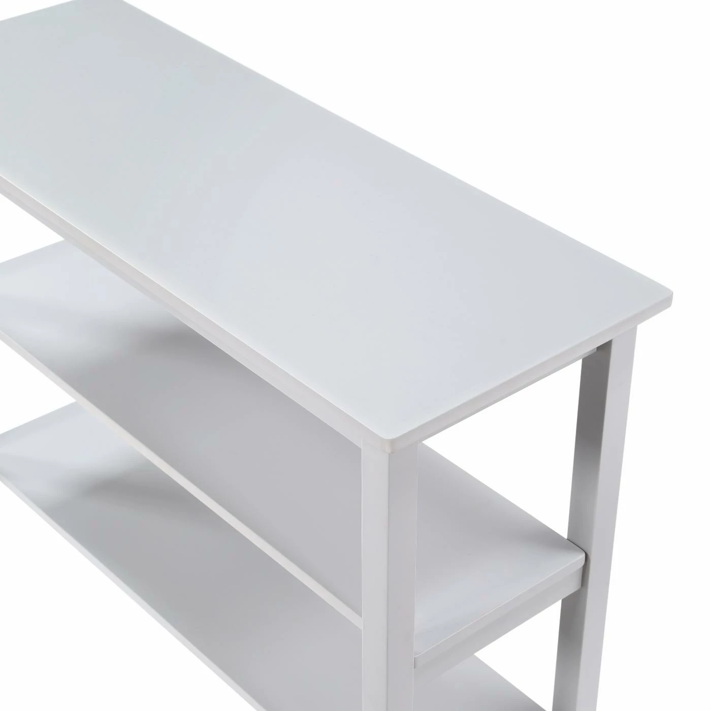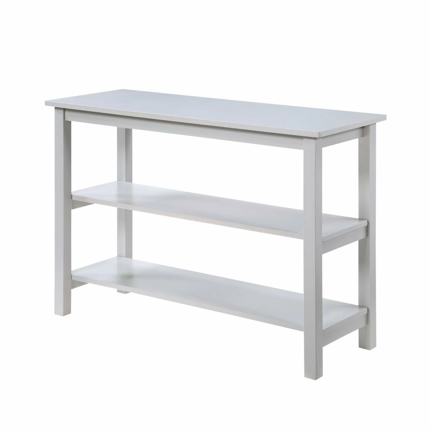 Sleek and minimalistic, the Boraam Landry Rectangular Console Table gives your television an elegant perch. The light gray finish looks crisp and fresh. Strong engineered wood and solid wood ensures lasting stability. A lower shelf gives you storage space for media.