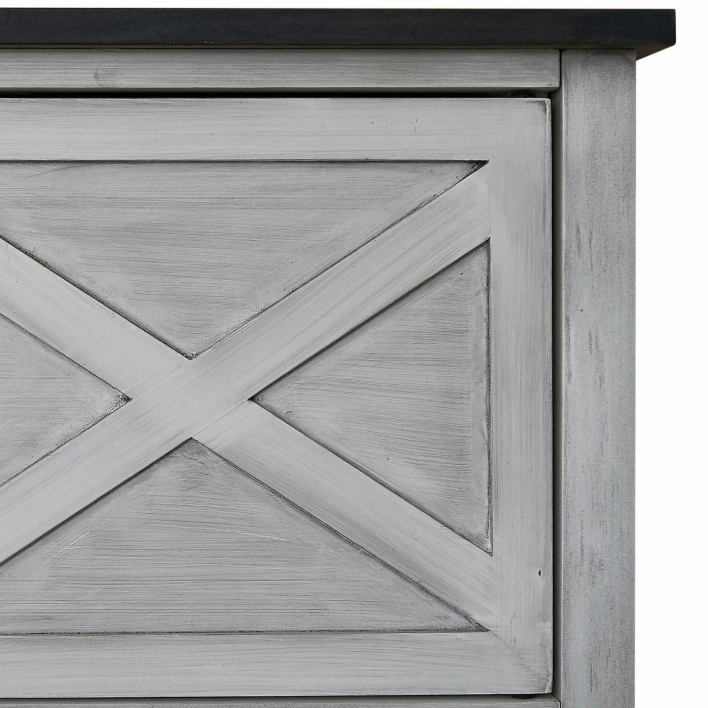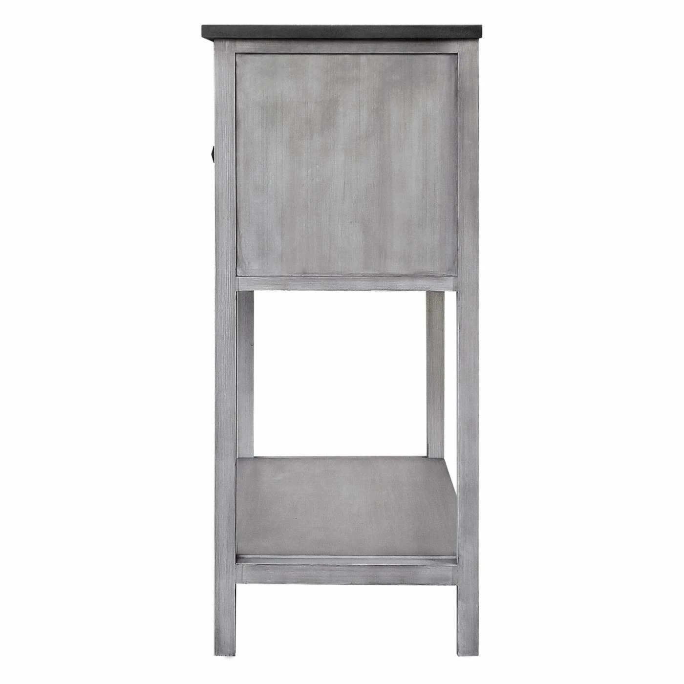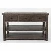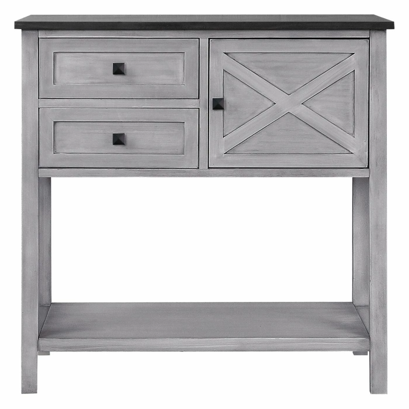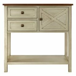 Give your home a rustic vibe with the Gallerie Decor Framingham Farmhouse Console Table. This console table features a sturdy wood construction in your choice of available finish, so you can get the right match for your décor. Two drawers and a door offer plenty of concealed storage space, and the bottom shelf supplies extra surface space as well.