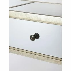 - Antique gold-finished accents around edges of mirrors