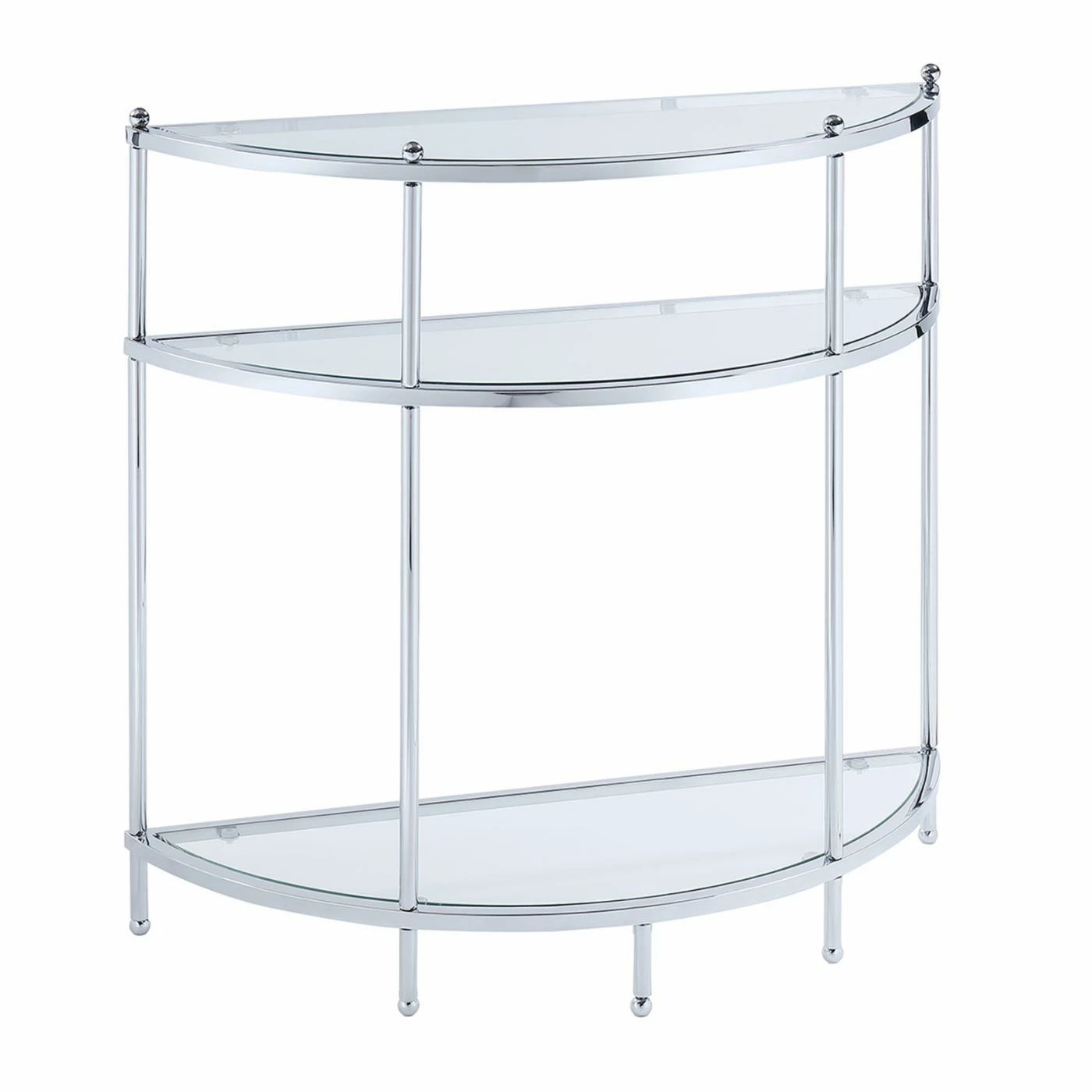 Keep your dΓ©cor elegant, simple, and modern with the Convenience Concepts Royal Crest Entryway Table. Perfect for displaying your favorite curios, plants, or pictures, this table gives you added storage space without detracting from your dΓ©cor. Its chrome frame is strong and durable while the three glass shelves highlight the beauty of your style.