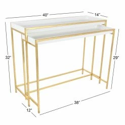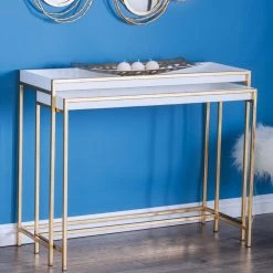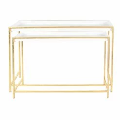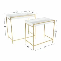 The DecMode Contemporary Rectangular Nesting Console Tables – Set of 2 brings a glamorous look to your living room or entryway with a shimmery mix of white and gold. The space-saving design features durable iron construction and tray tops. Choose from the available sizes to discover the perfect fit for your home.