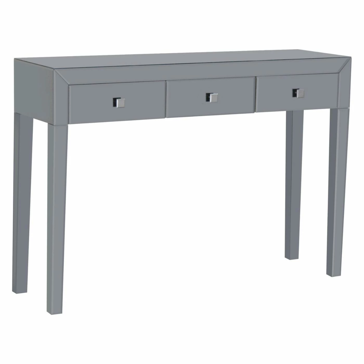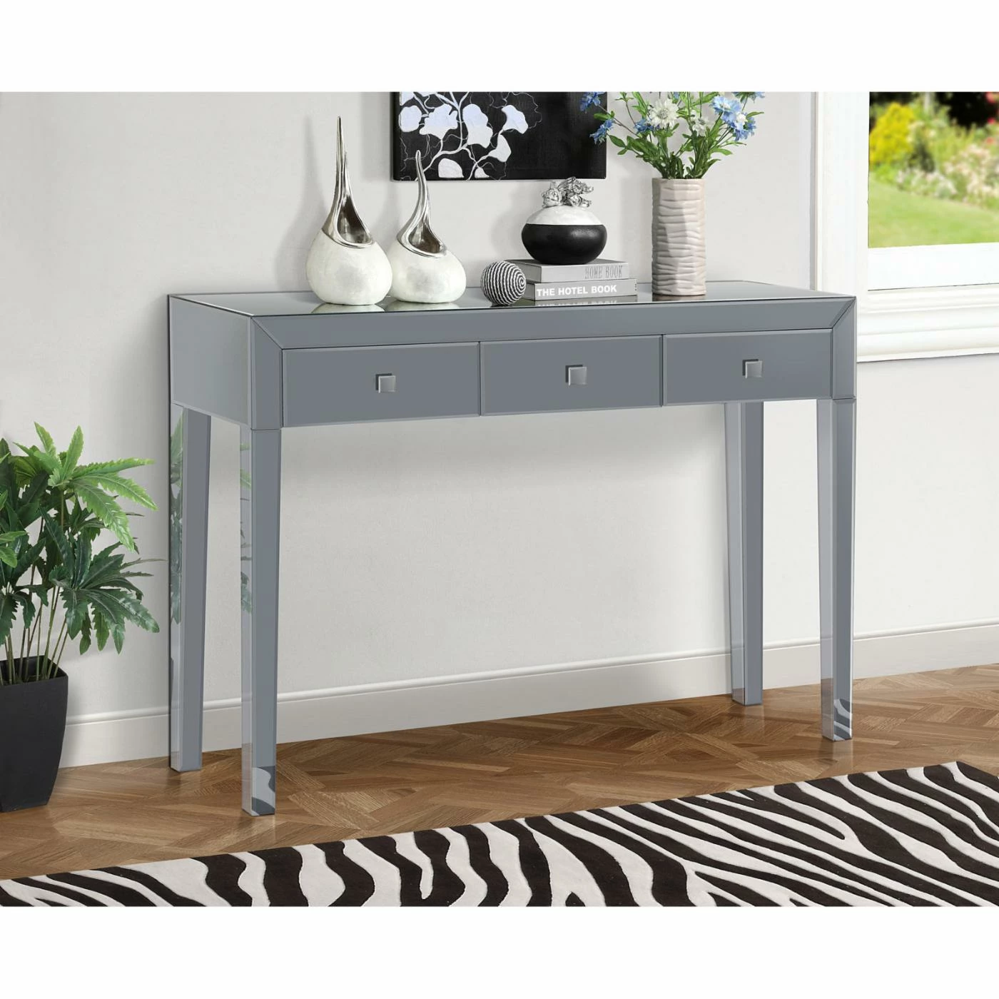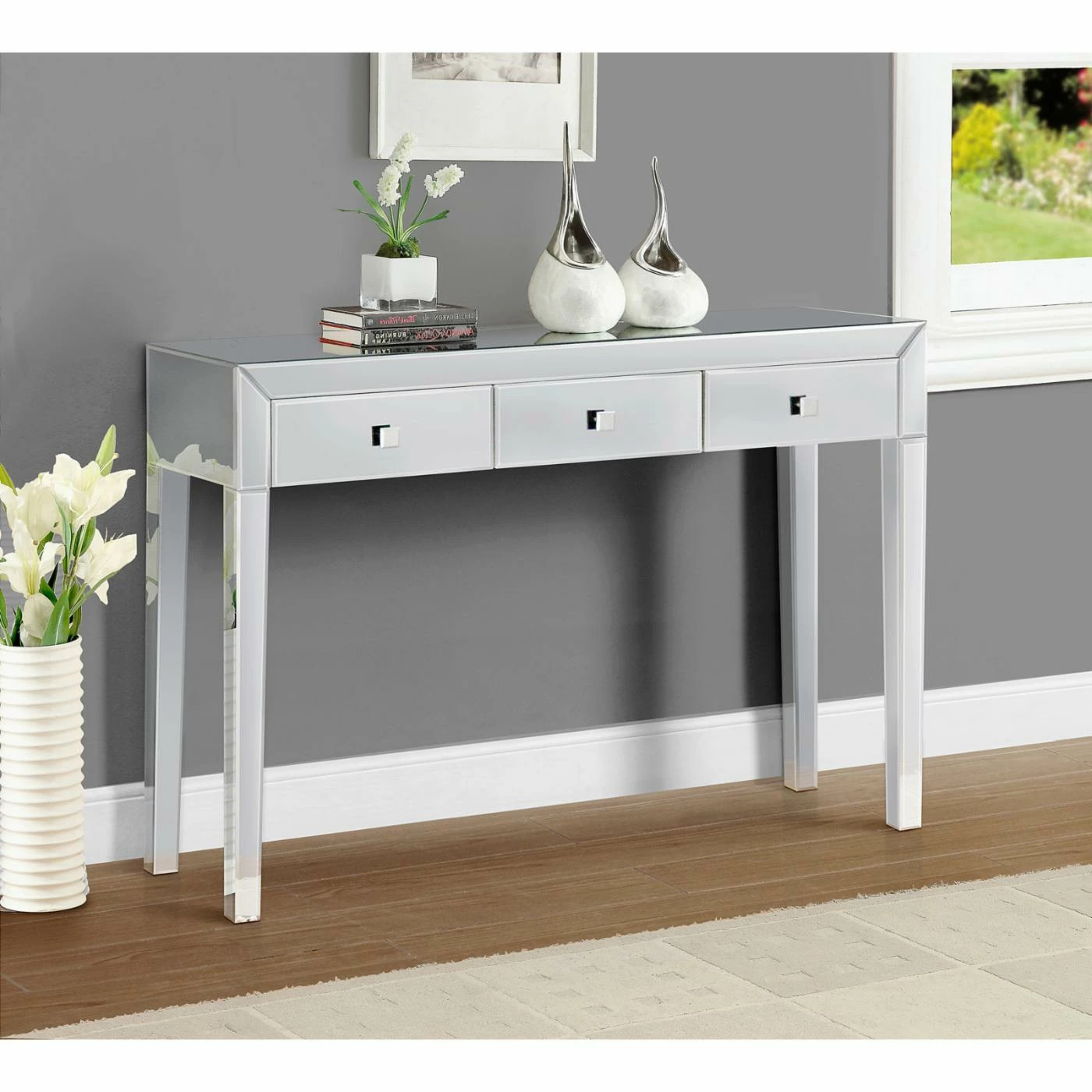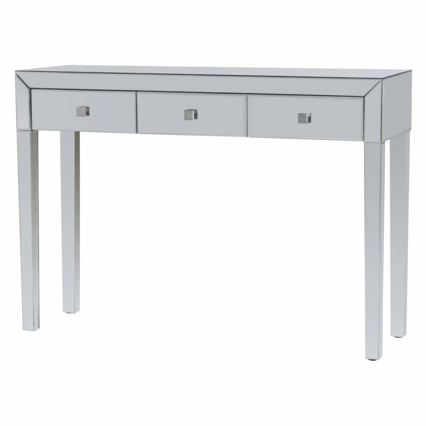 Add a touch of glitz to your room with the Gallerie Decor Reflections Mirrored Console Table. Three drawers make this table perfect for use in your living room or hall. Its intricate detailing and shine make it a beautiful accent piece.