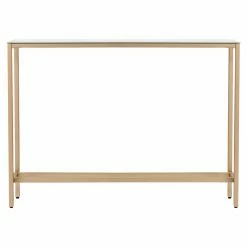 There are lots of ways to add a sleek table to your space, but our favorite is the Southern Enterprises Darrin 36 in. Console Table. This unique piece is made from a base of sleek, square-tube metal with a powder-coated finish in muted gold. Across the top is a thick mirror with wide, beveled edges. The mirror is backed with engineered wood that gives it a strong, stable structure. This also allows you to use the table for purposes ranging from the decorative to the practical.