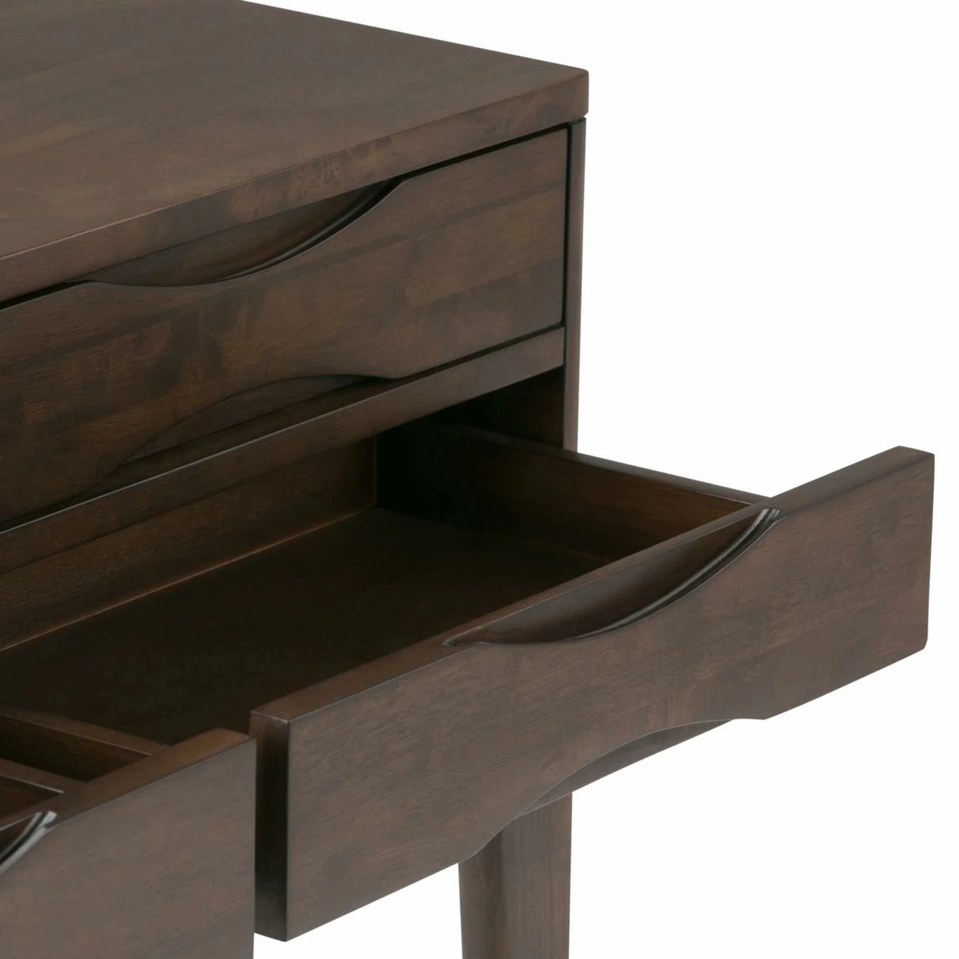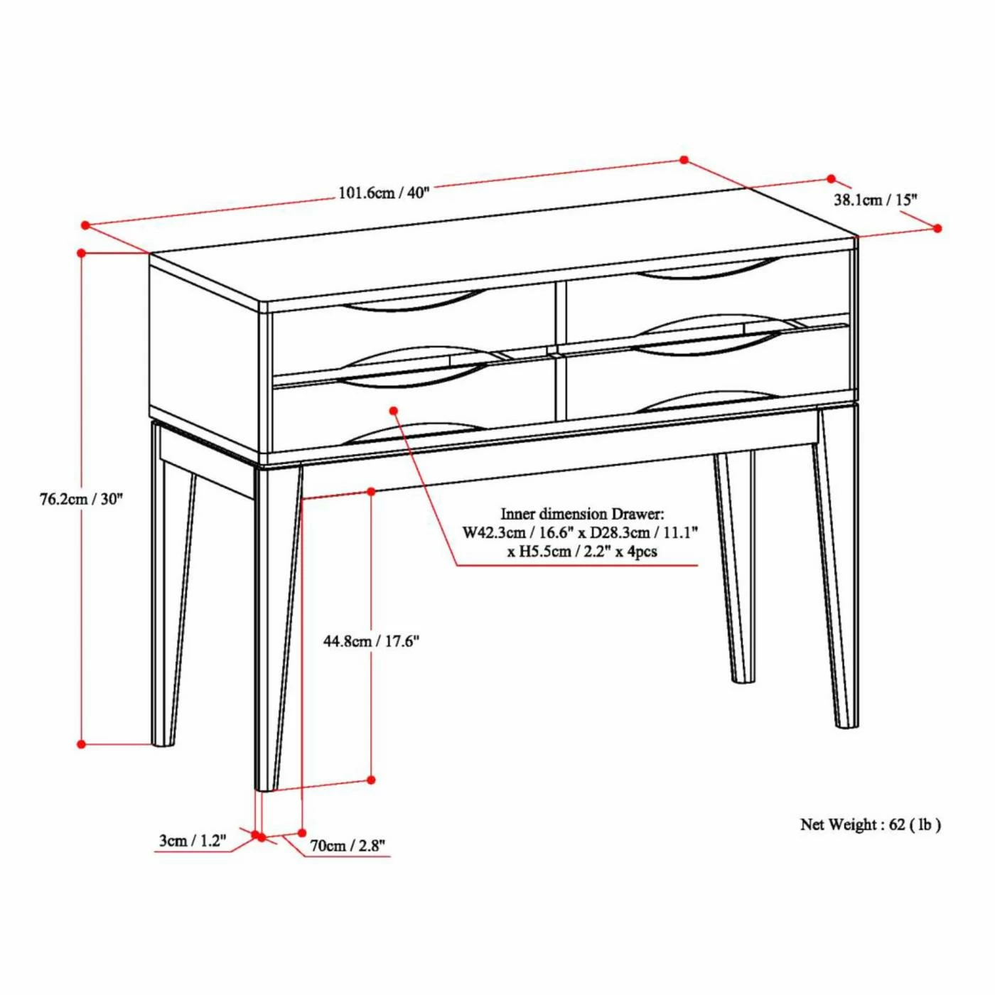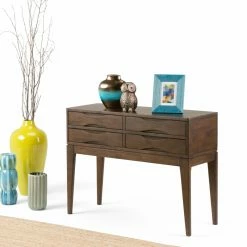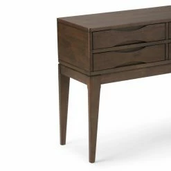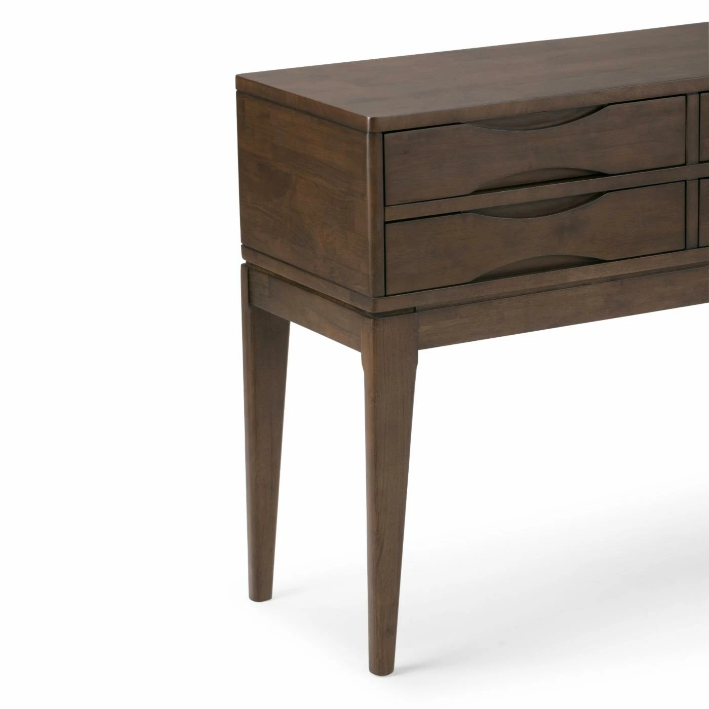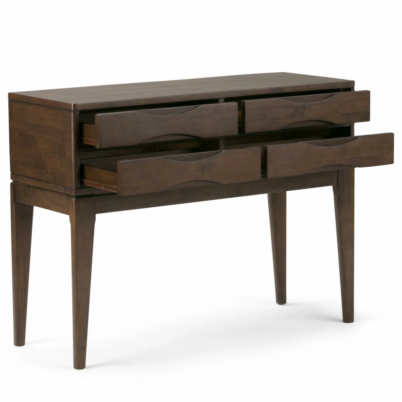 Your living space will gain a mid-century touch with the HN Home Ando Mid-Century Modern 4 Drawer Solid Hardwood Hallway Console Table. With four drawers, this piece has plenty of room for storage. The rich brown finish and tapered legs, this console table pops in any room.