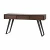 Give your living space a mid-century touch with the HN Home Ando Mid-Century Modern Solid Hardwood Console Table. The three drawers have notched handles and provide ample space for storage. The rich brown finish and tapered legs give this piece its finishing touches.