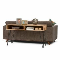 The HN Home Paxton Mid-Century Modern Natural Mango Wood and Metal Console Table brings a industrial and rustic touch to your living space. With two large compartments, this piece has plenty of room for storage. With a soft natural finish and V-shaped legs, this table has a unique style that will shine in any space.