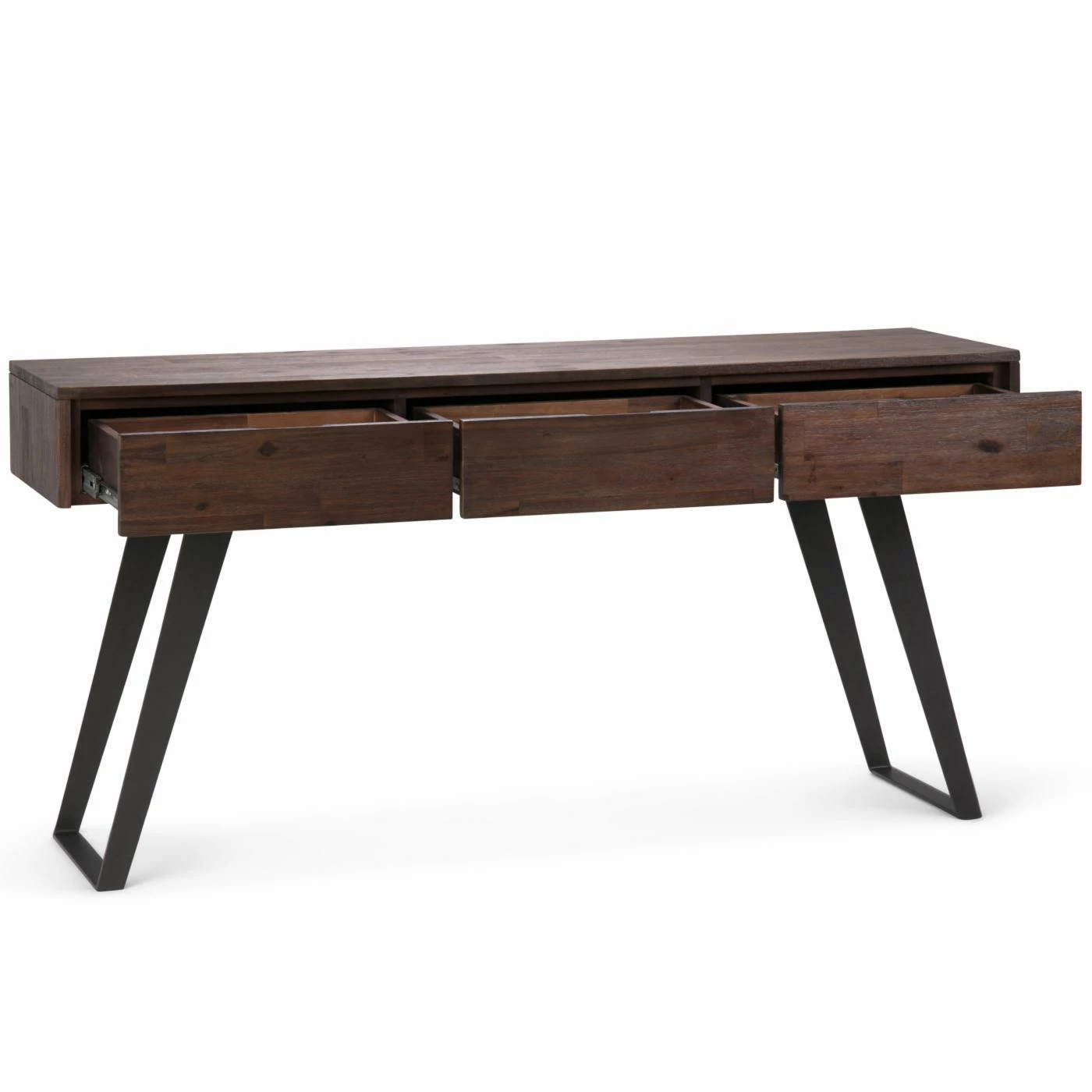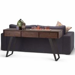 Give your living space an extra touch of elegance with the HN Home Utzon Mid-Century Modern Acacia Wood and Metal Console Table. This piece is the perfect combination of rustic and modern style. With three drawers, this table has ample space for storage.