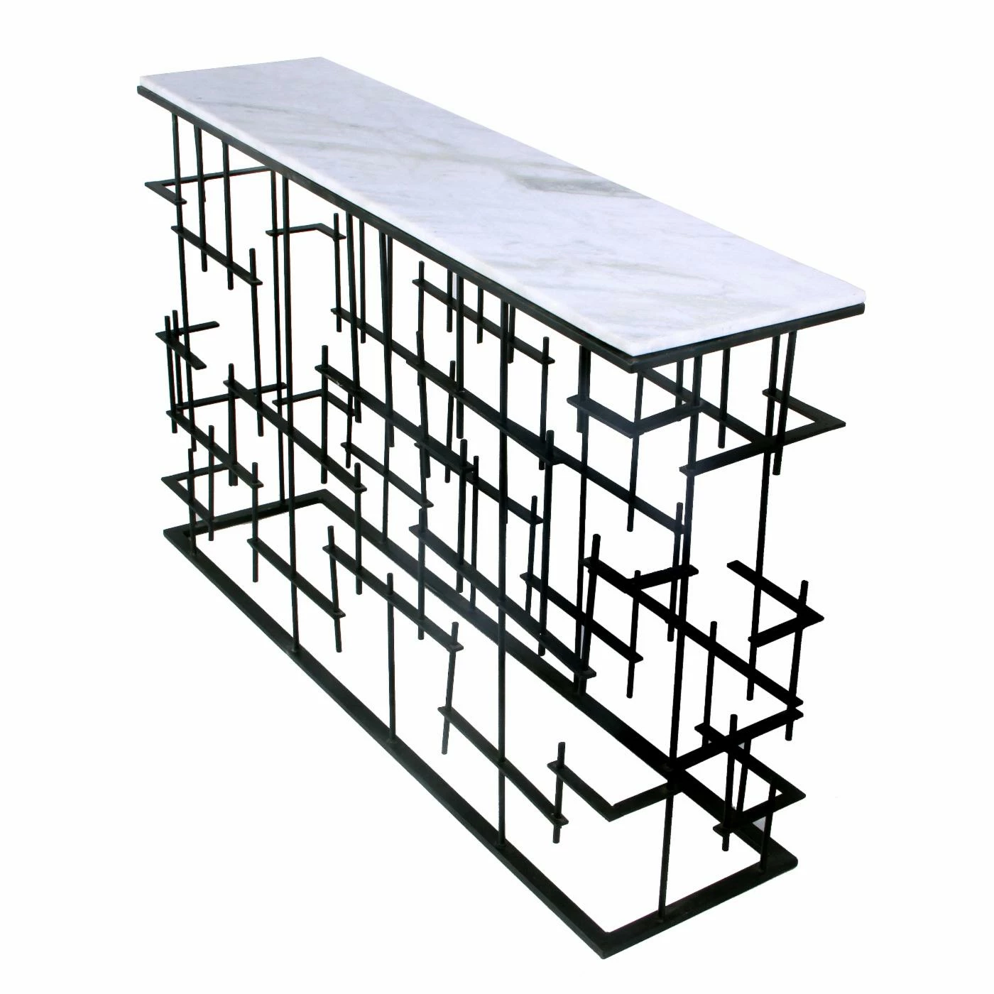 The Moe’s Home Collection Matrix Console Table in your entryway will welcome guests into your luxurious home matrix. This bold console table features a slim and tall floating black metal bar frame that seems to defy gravity. A stunning white marble top is shot through with gray and is sure to inspire your entire room design.