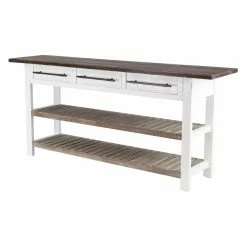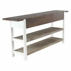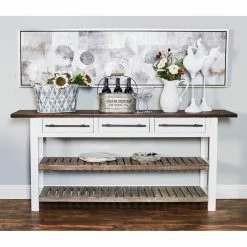Update your decorative scheme with the DecMode Traditional 3-Drawer Wooden Console Table that exudes rustic style. This table features a sturdy wood construction and boasts a distinctive brown and white finish that’s easy to pair with most decorative schemes. It boasts two shelves and three drawers to enhance household organization.